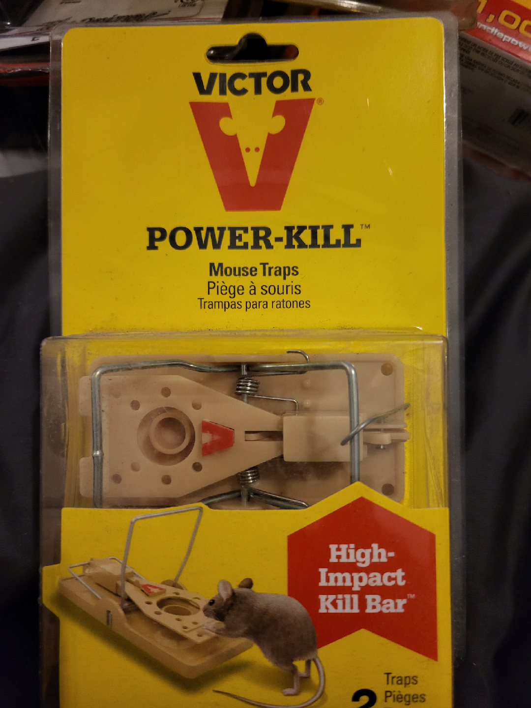 Selling a package of VICTOR POWER-KILL Mouse Traps. This package includes two traps, perfect for keeping your space free from unwanted guests! High-Impact Kill Bar.