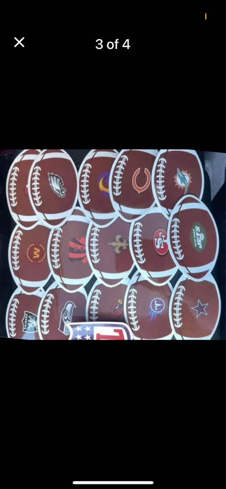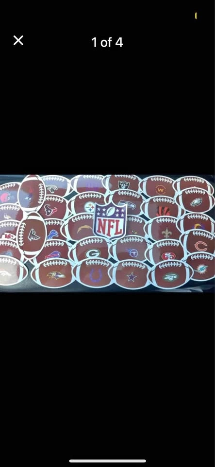 Show off your love for the NFL with this complete set of team logo football decals! This high-quality sticker set includes all 32 NFL teams displayed on football-shaped decals, plus the official NFL logo at the center. Perfect for decorating laptops, windows, notebooks, cars, or your fan cave!