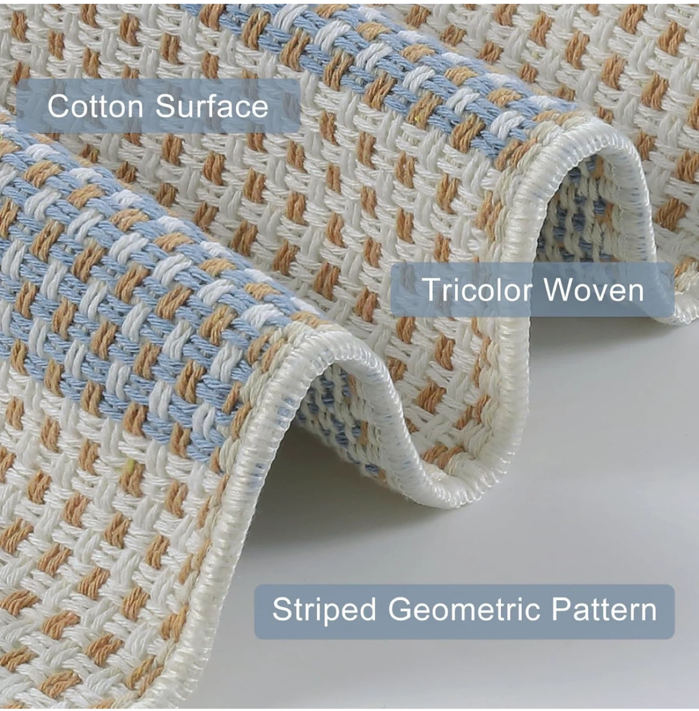 This new cotton rug features a striped geometric pattern with tricolour woven design. It's made of cotton and is super soft. It’s also easy to clean, being machine washable and suitable for vacuum cleaning