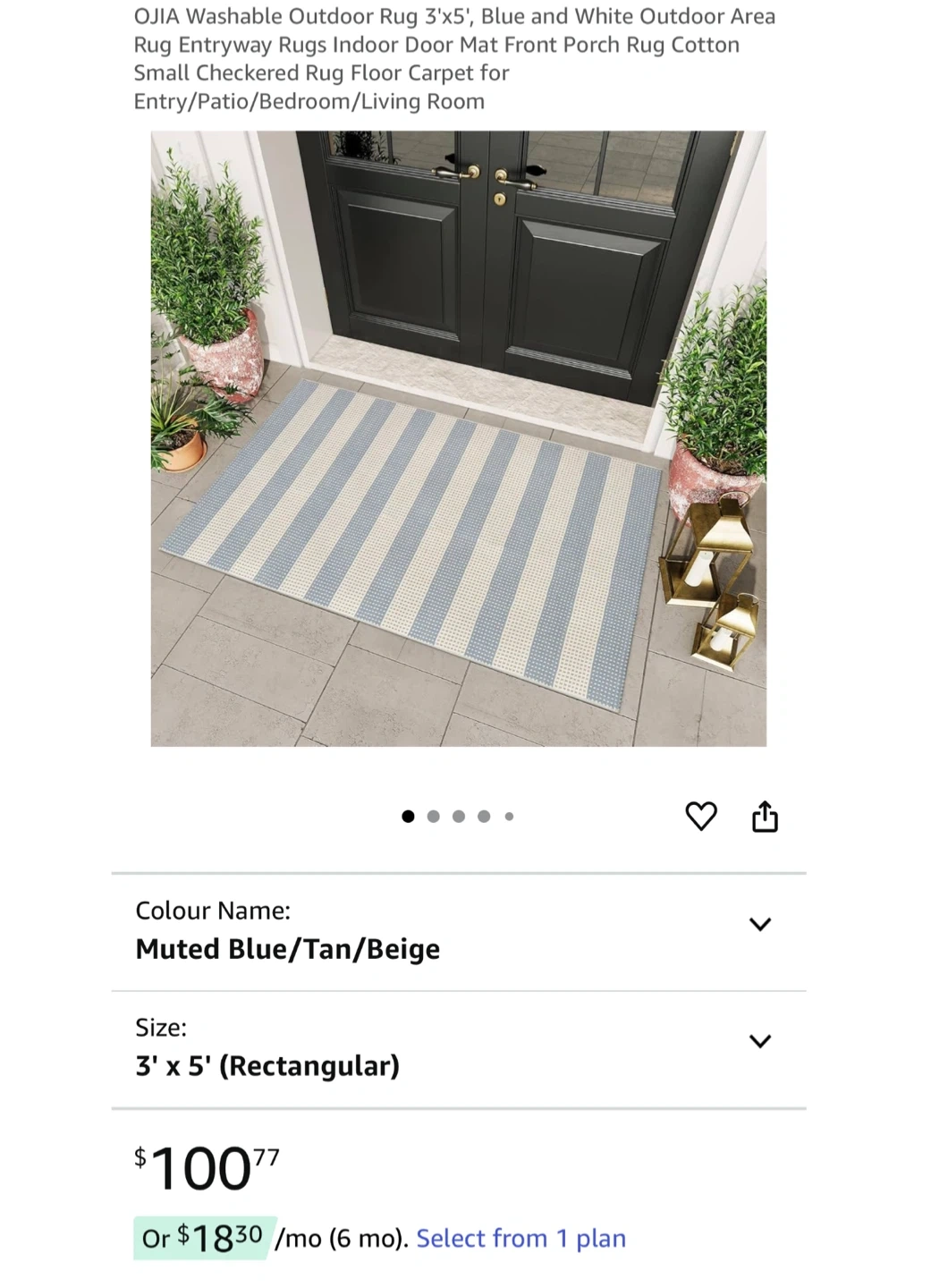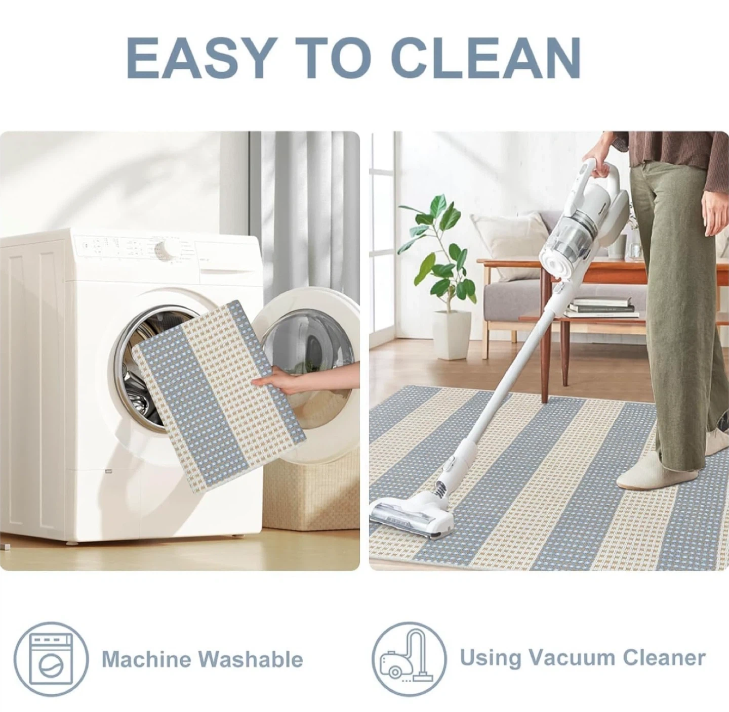 OJIA Washable Cotton Rug. 3’x5’