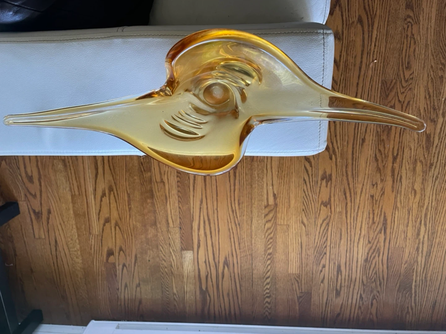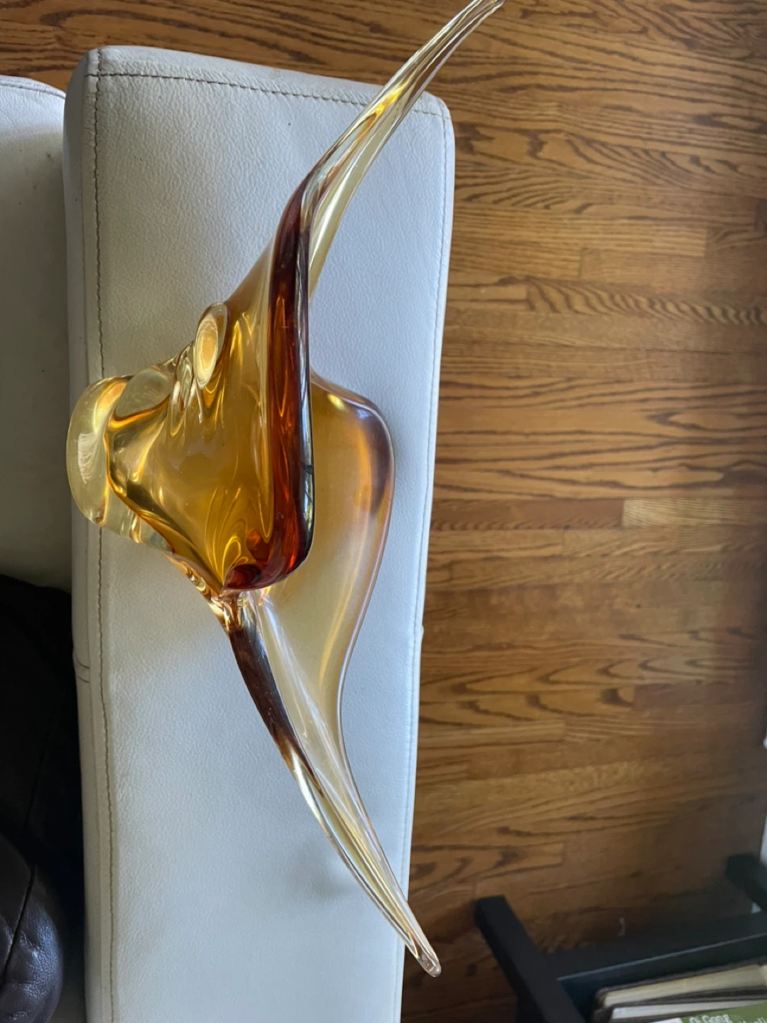 Selling a beautiful amber art glass bowl. It's in great condition and would look lovely as a centrepiece or decorative item in your home. The unique design and colour make it a standout piece
