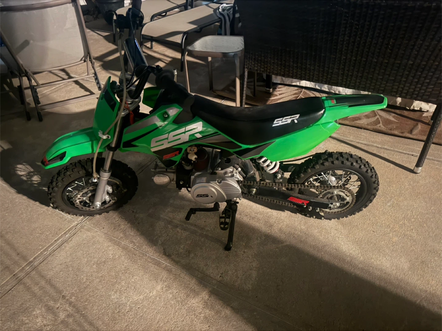 Buy & SellSSR Green Dirt Bike 70ccSSR Green Dirt Bike 70cc$343Selling a green SSR dirt bike. 20 hours riding. Three gears no clutch. Great to teach children about gears.ConditionLike newWHERE TO MEETCheck LocationView MapSELLERWalterMarine Park170 reviews0 chats·1 favorites·54 views
