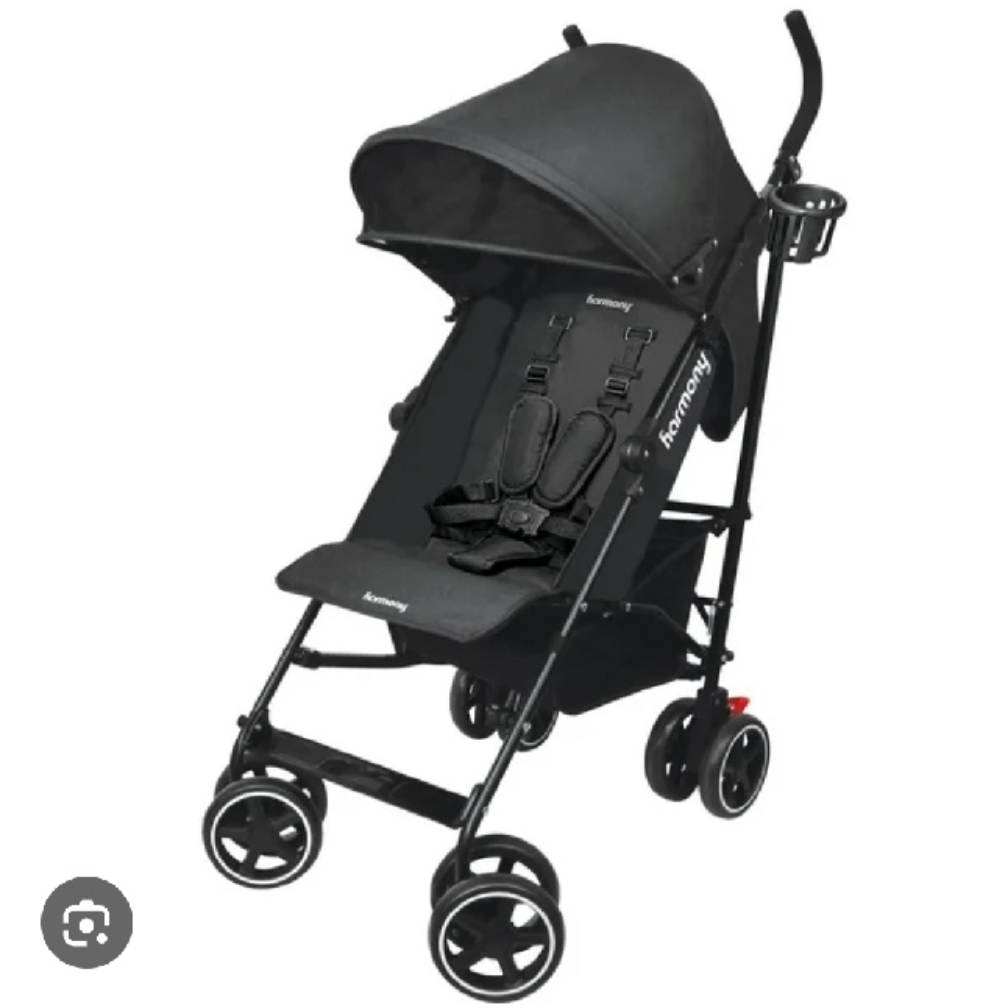 Selling a Harmony stroller in black. It's in great shape and ready for a new little one! Perfect for walks around the neighbourhood or trips to the park. It also features a handy cup holder