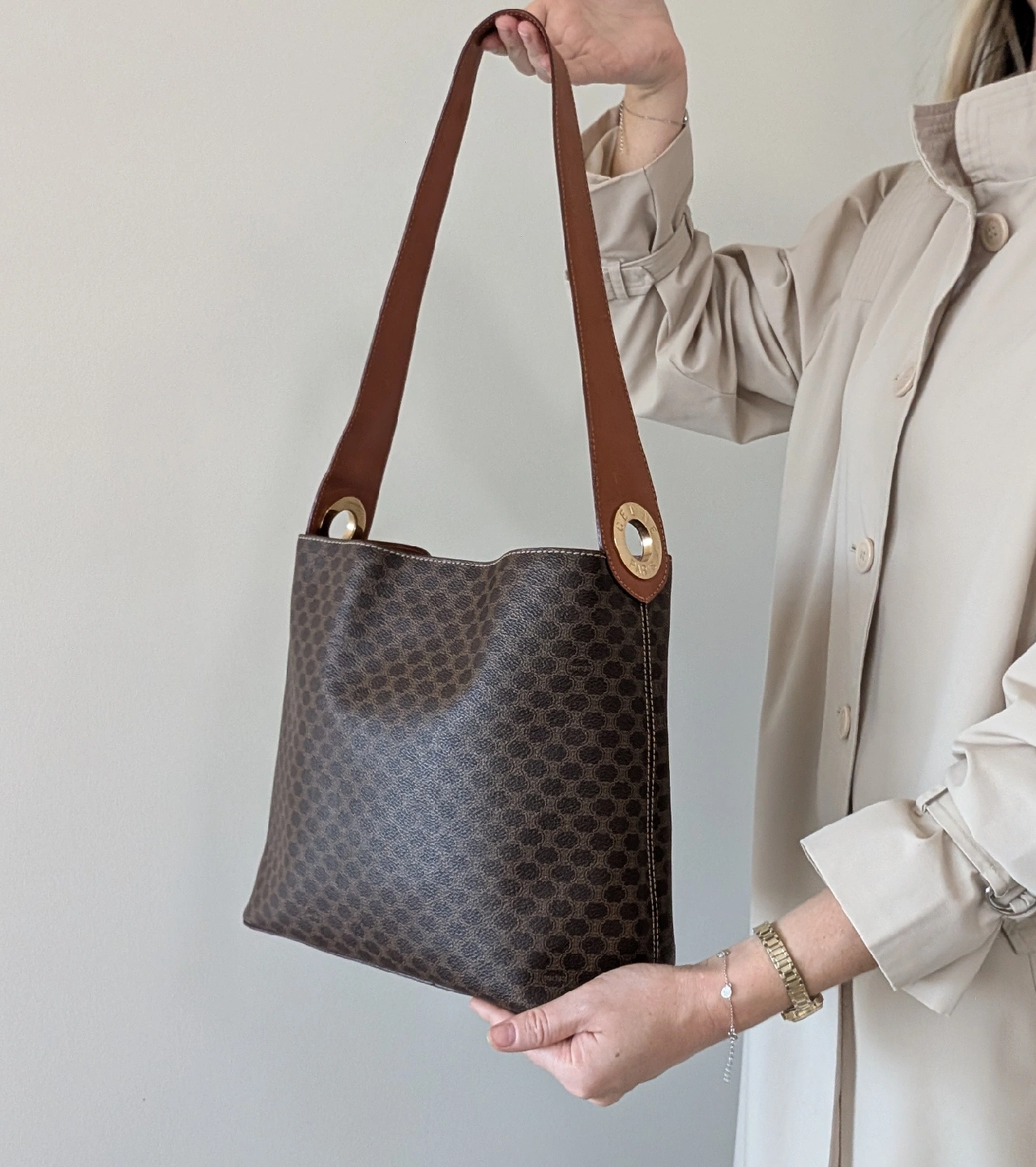 Celine Macadam Tote Bag – Brown Leather – Authentic Vintage Selling a beautiful Celine Macadam tote in rich brown leather. This classic piece is authentic and in good vintage condition, with timeless appeal. The interior is clean and includes a zippered pocket for secure storage.