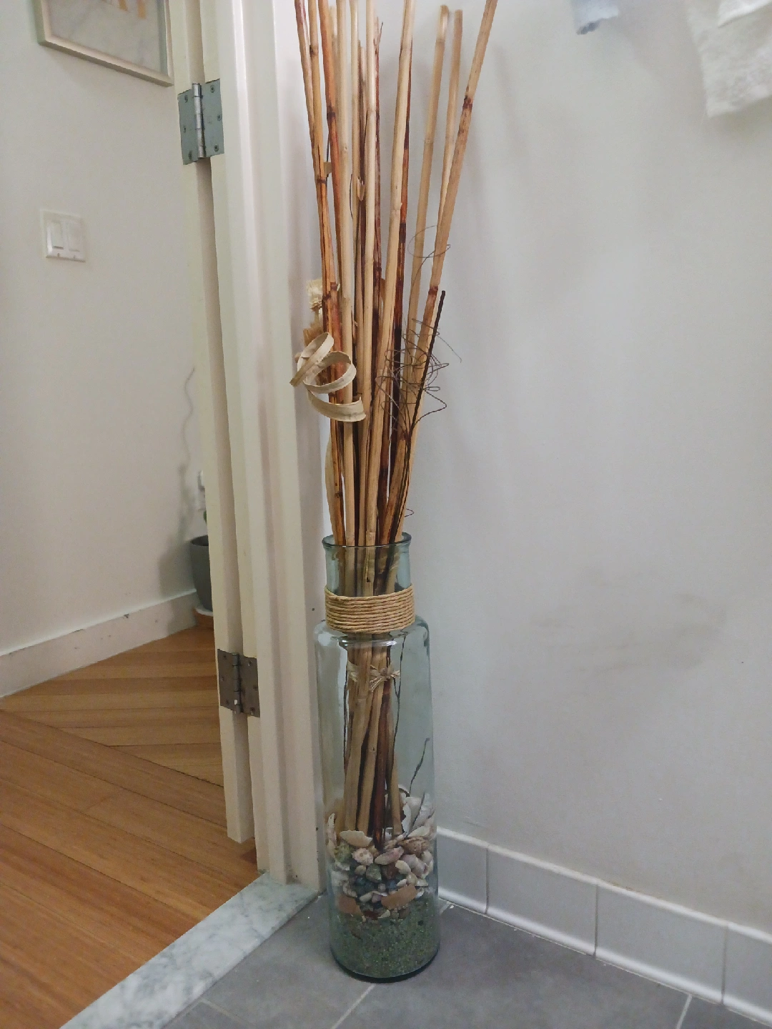 Collector’s Coastal Glass Vase – (Seashells, Beads, Sticks)