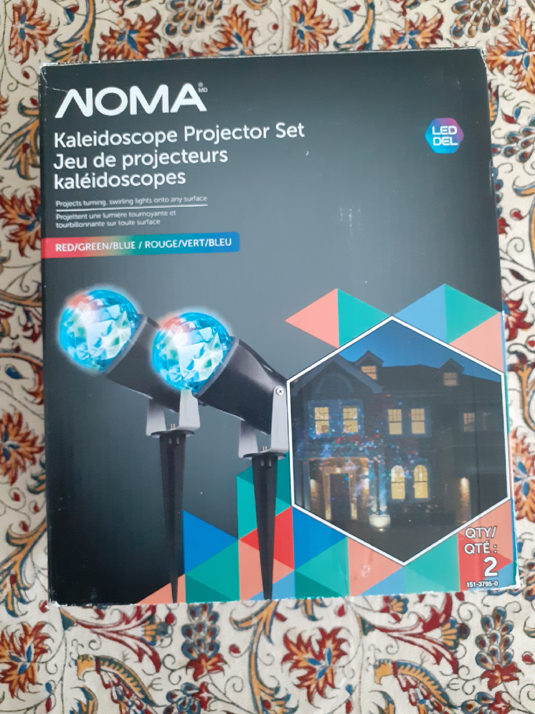 Create a fun light display with this NOMA Kaleidoscope Projector Set! This set projects turning, swirling lights onto any surface in red, green, and blue. It comes with 2 projectors and the original box
