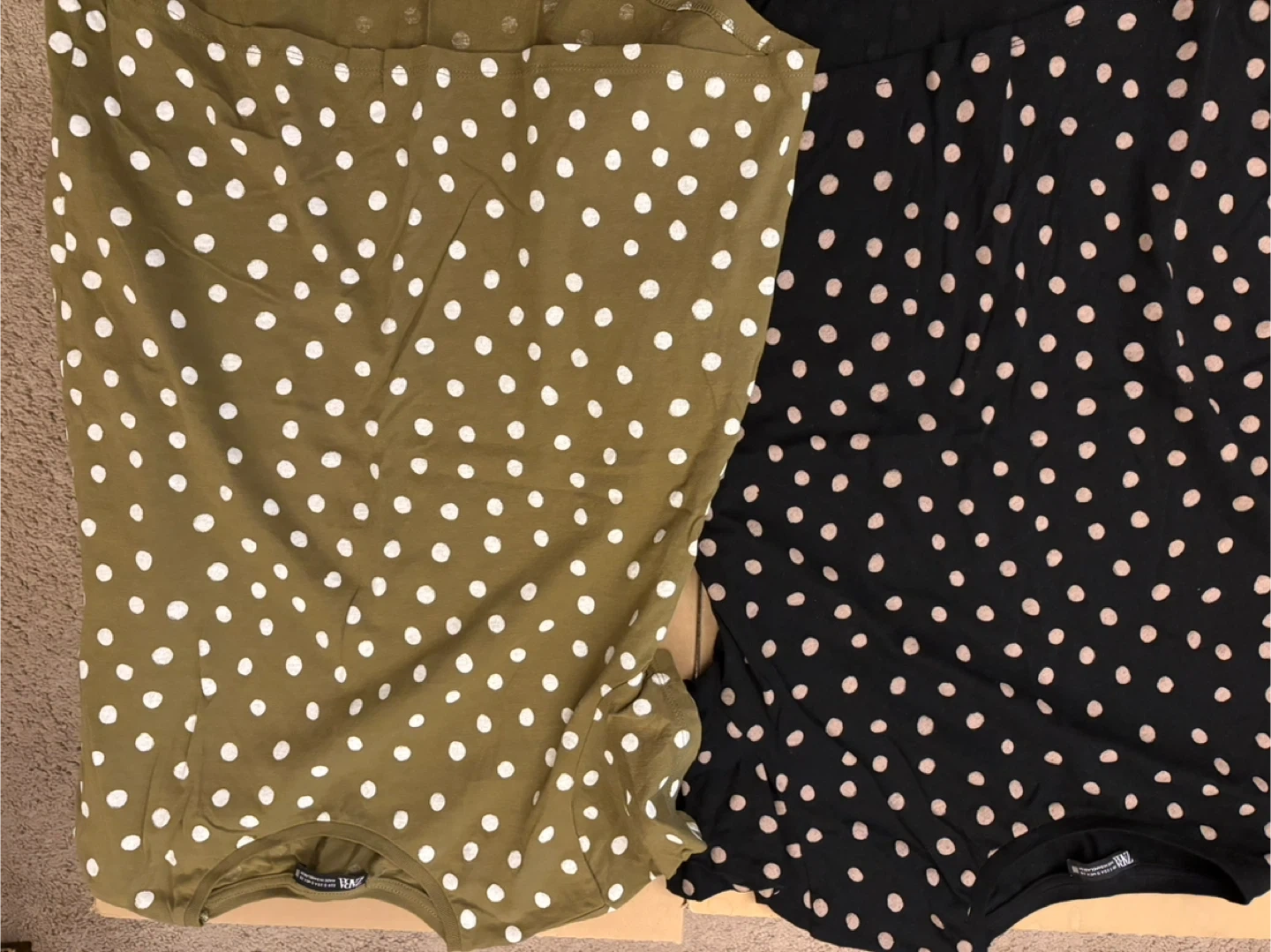 - Barely worn, the green with polka dots was never worn, neither was the olive, I just cut the tag.