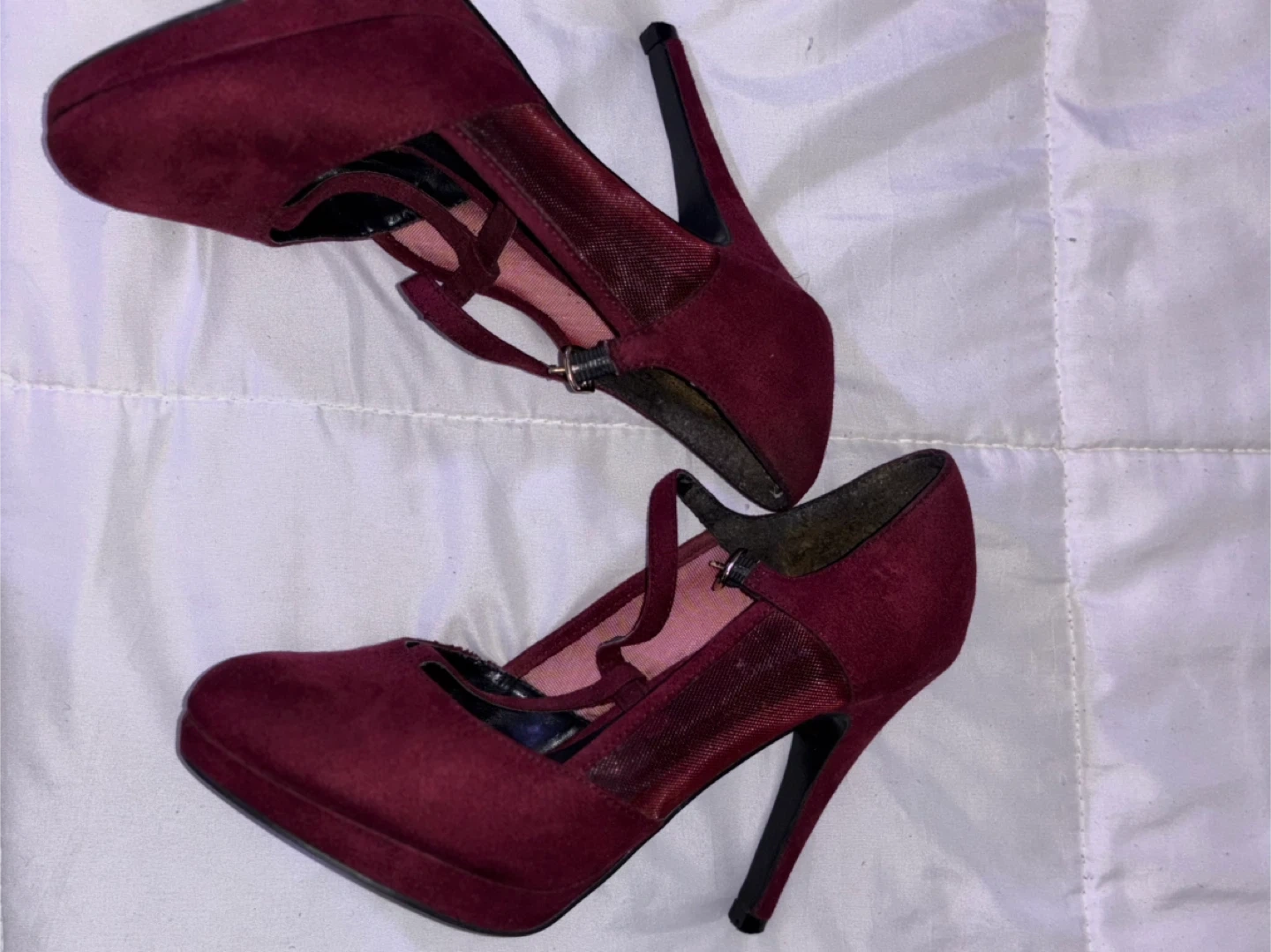 Selling a pair of burgundy heels from Call It Spring in size 7.5. They have a stylish design with straps and a stiletto heel. Please see the photos for condition details.