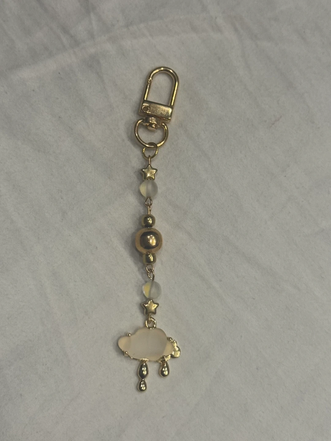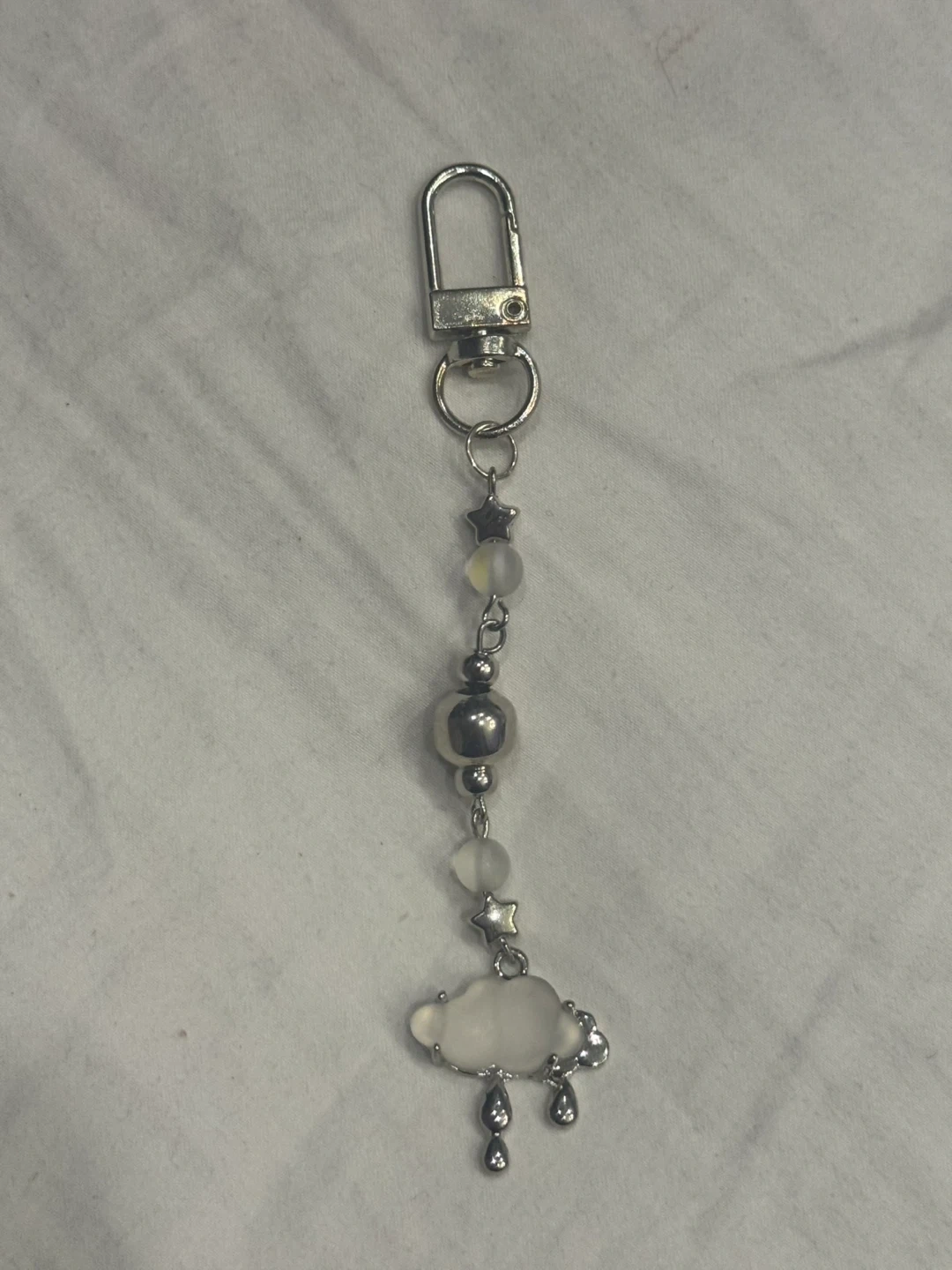 15This is a cute cloud and star charm keychain! It features a cloud charm with raindrop details, interspersed with star and bead accents. Perfect for adding a touch of whimsy to your keys or bag