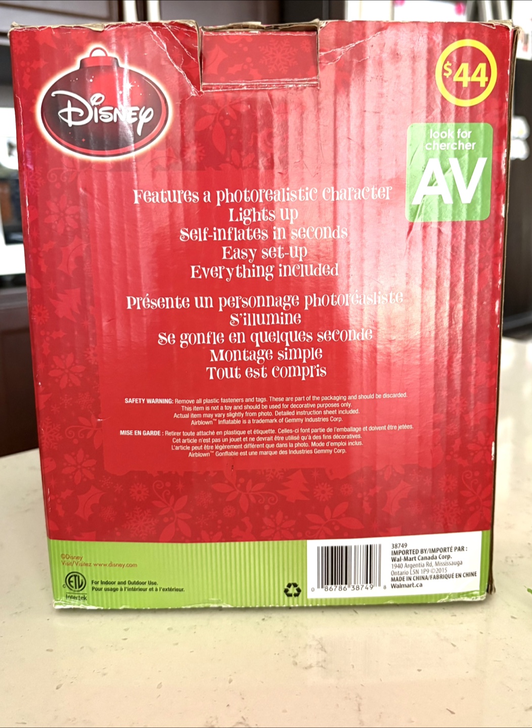 It stands 5 ft tall and features a photorealistic character.