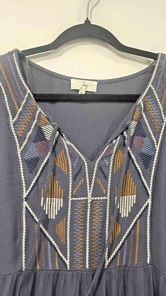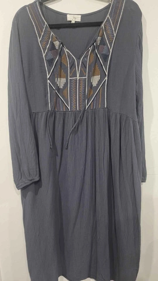 🧡Long grey dress with embroidered pattern on the front chest area. Soft rayon fabric. Perfect for the Fall season. Pair with some boots.🧡 Imported from Marketplace.