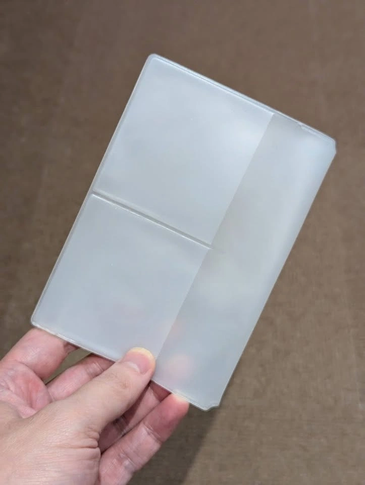 Plastic zipper case that you can insert into your passport size notebooks. One end is a zipper case and another end has pockets for cards.