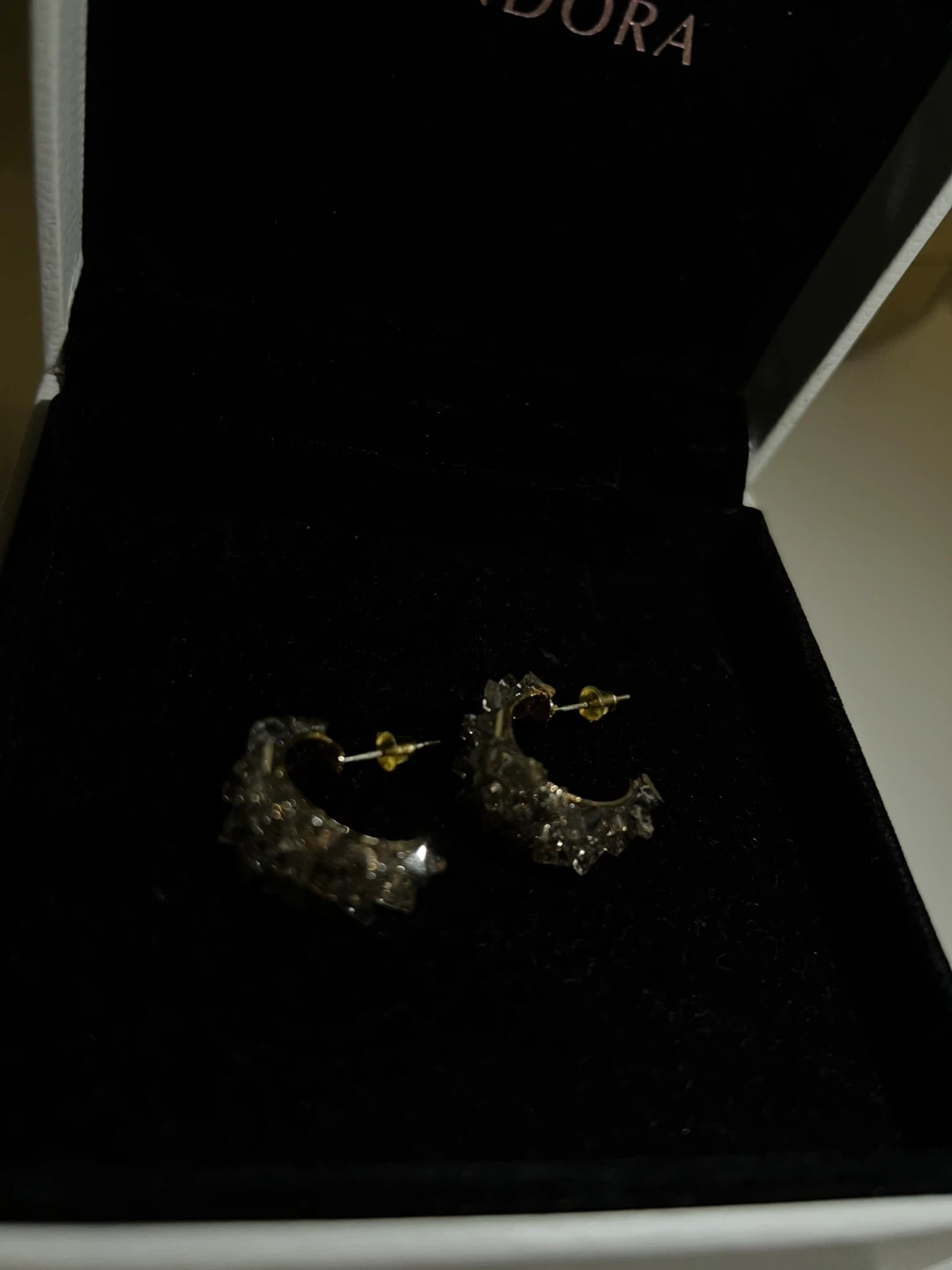 Selling a pair of hoop earrings. Perfect for adding a touch of sparkle to any outfit!