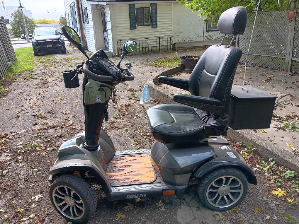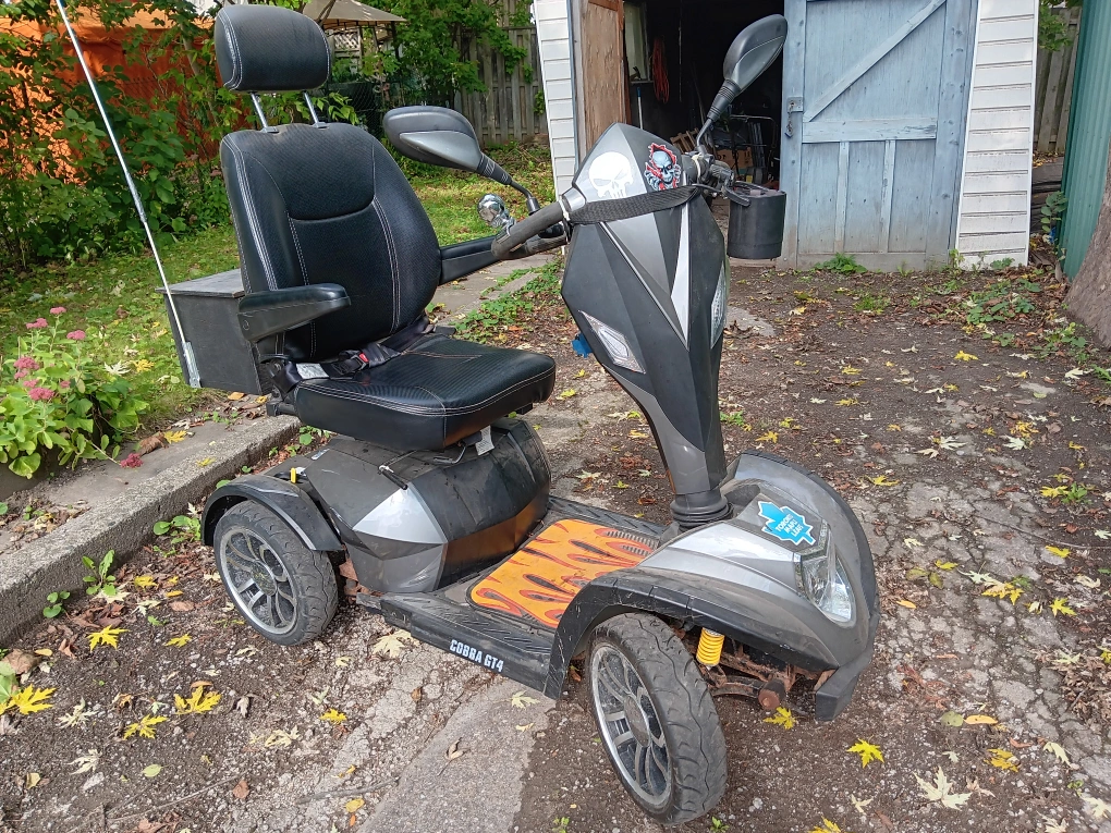 Selling a Pride Mobility Cobra GT4 scooter. It has a comfortable seat and is easy to manoeuvre. Great for getting around town! New battery in 2023 and 2 new tires in 2024