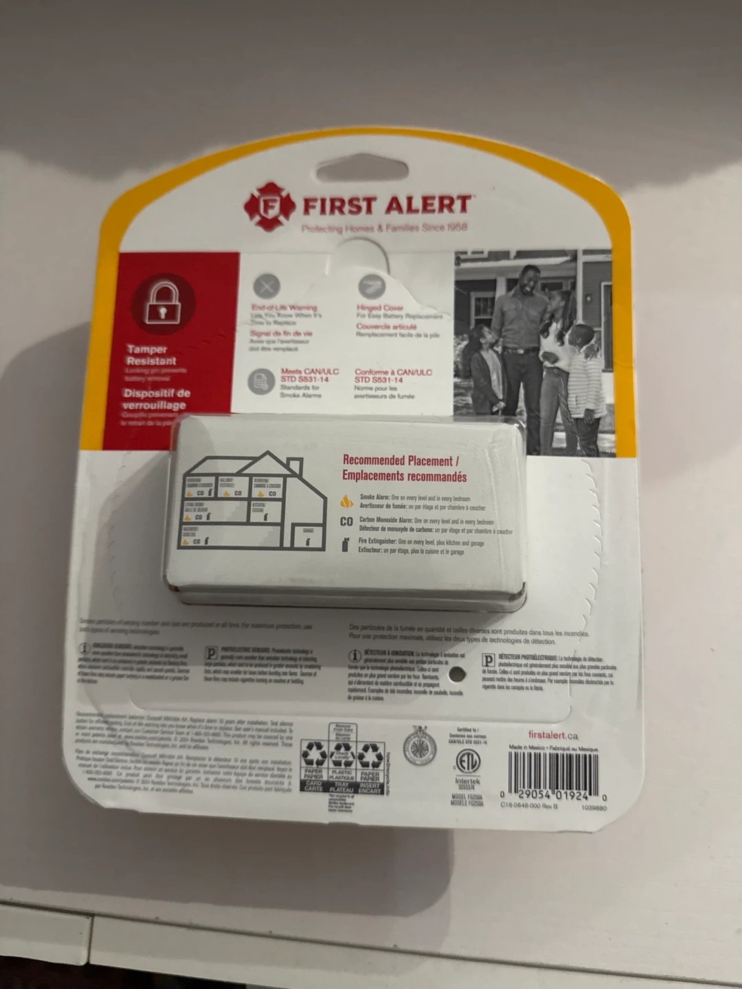 Selling a brand new First Alert smoke alarm, still in its original packaging! It's tamper-resistant and designed for easy battery replacement. Conforms to CAN/ULC STD S531-14 for smoke alarms.