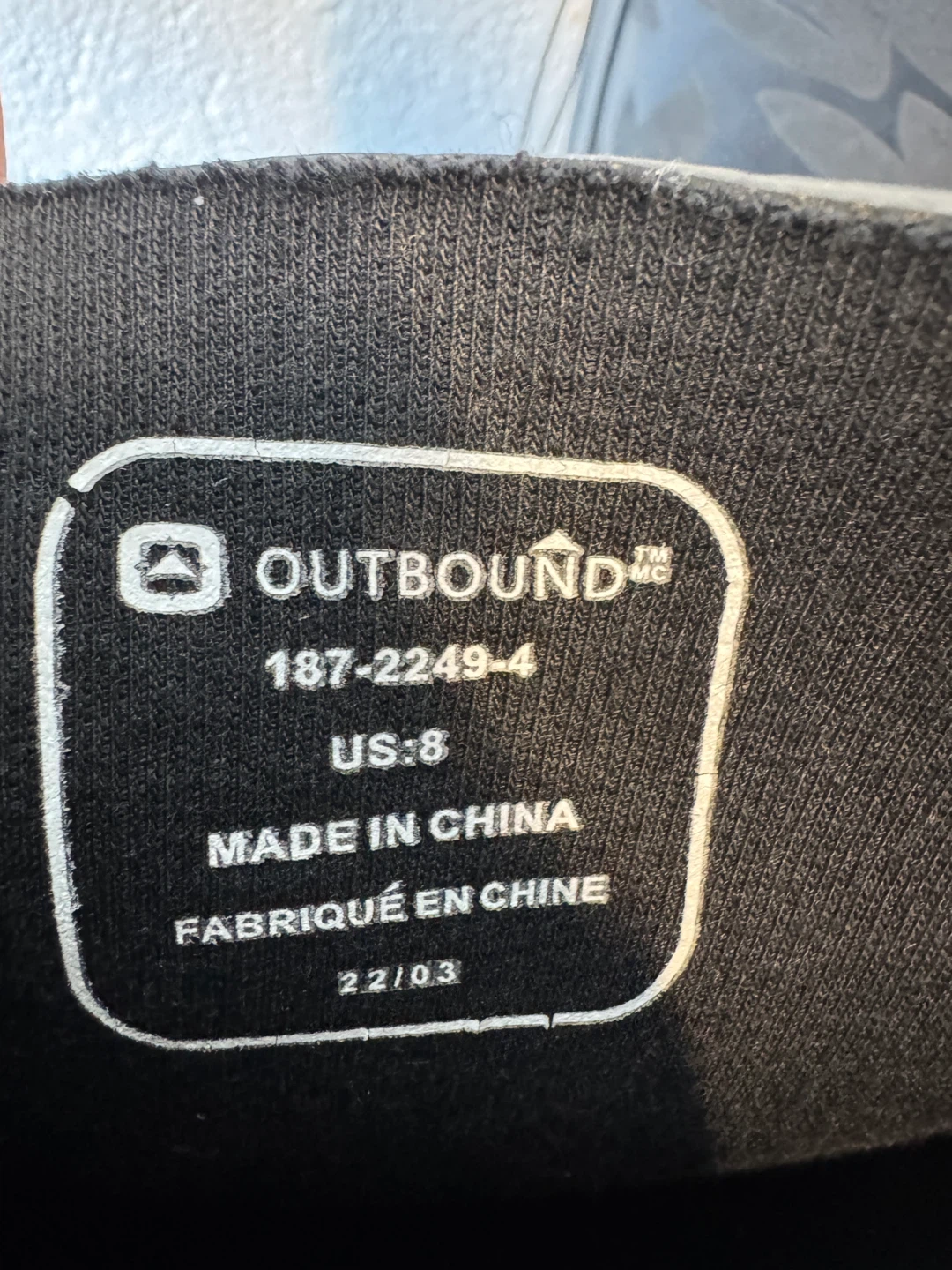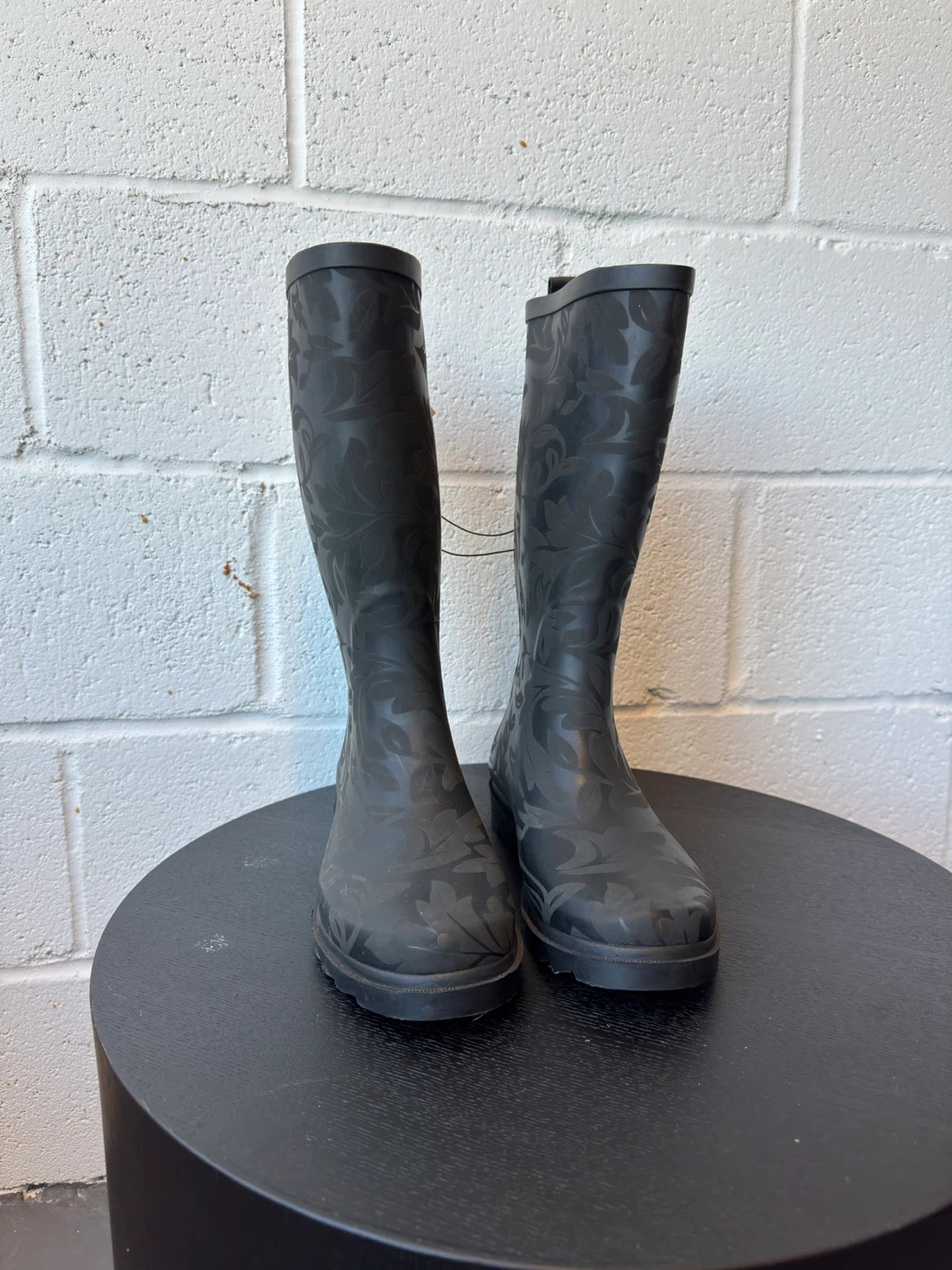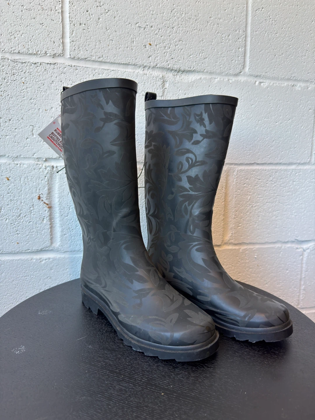 Selling a pair of Outbound Waterproof Flora Rubber Boots. These boots are 100% waterproof and feature a cushioned insole for added comfort. The durable lug outsole offers extra grip, and the pull-on back loop makes them easy to slip on and off. Size US 8.