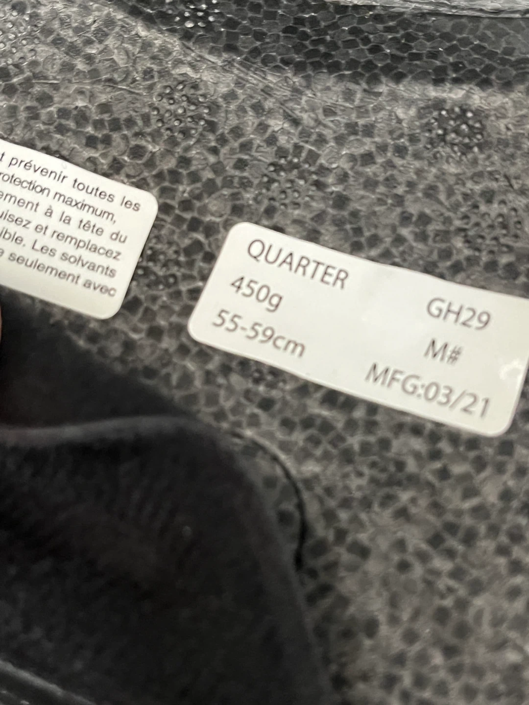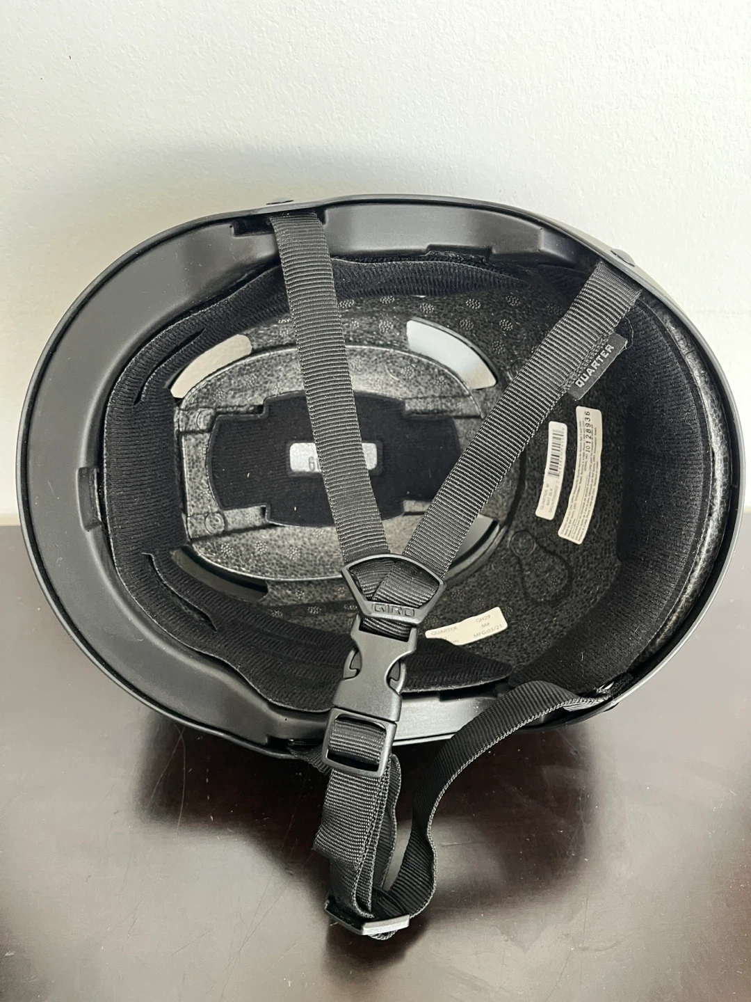 Giro Quarter helmet in black. It's a size medium, fitting head circumferences of 55-59cm. It's lightweight and provides great protection for biking, skating, or other activities.