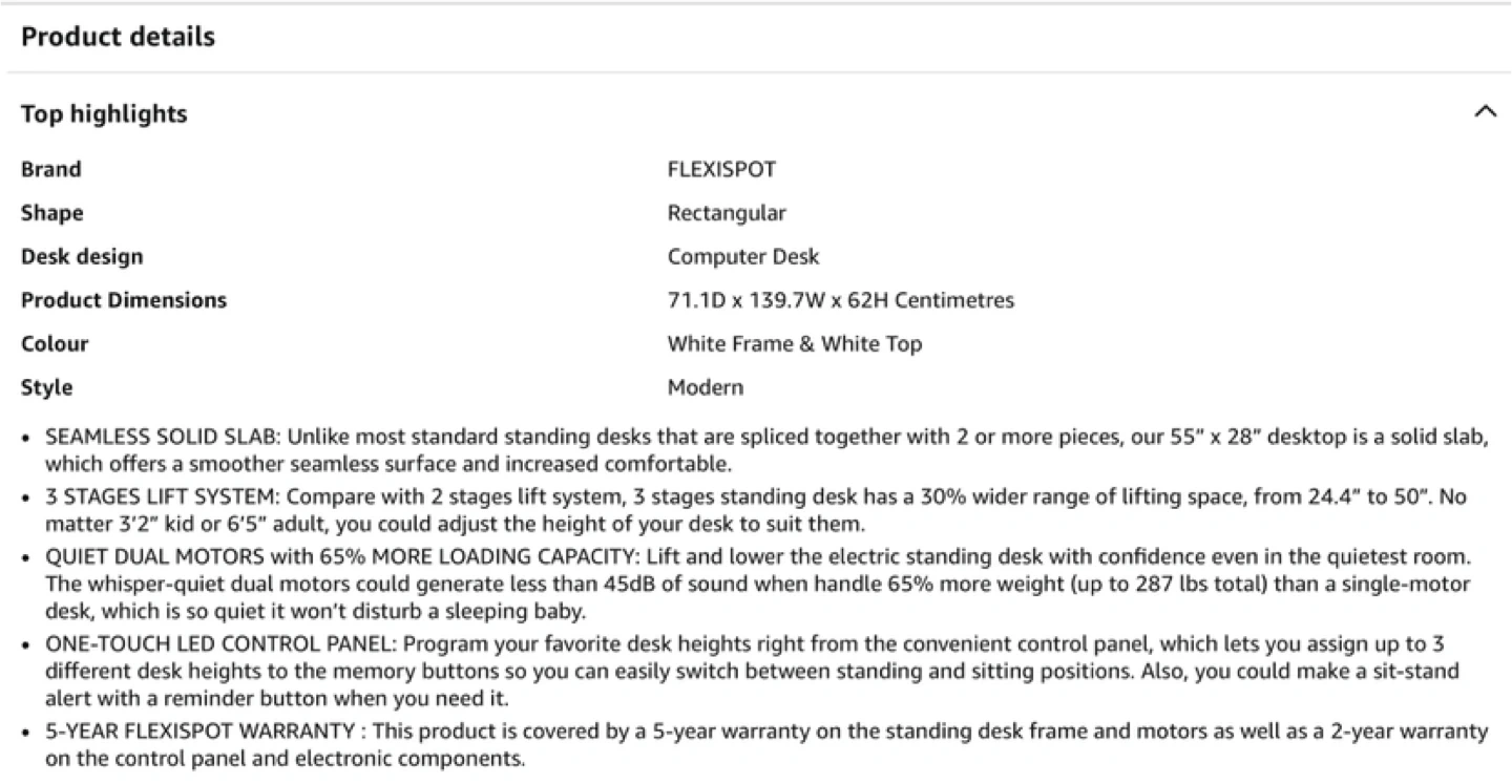 • 5-YEAR FLEXISPOT WARRANTY: This product is covered by a 5-year warranty on the standing desk frame and motors as well as a 2-year warranty