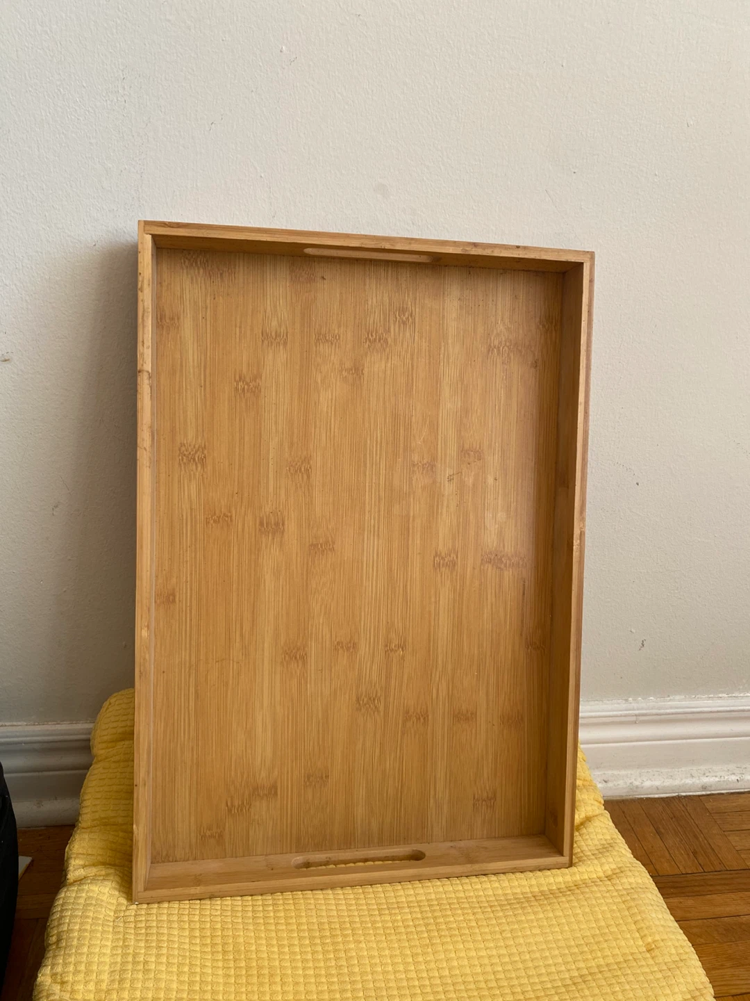 Selling a wooden tray. It's in like new condition and ready for a new home! Perfect for serving breakfast in bed or organizing items on your desk.
