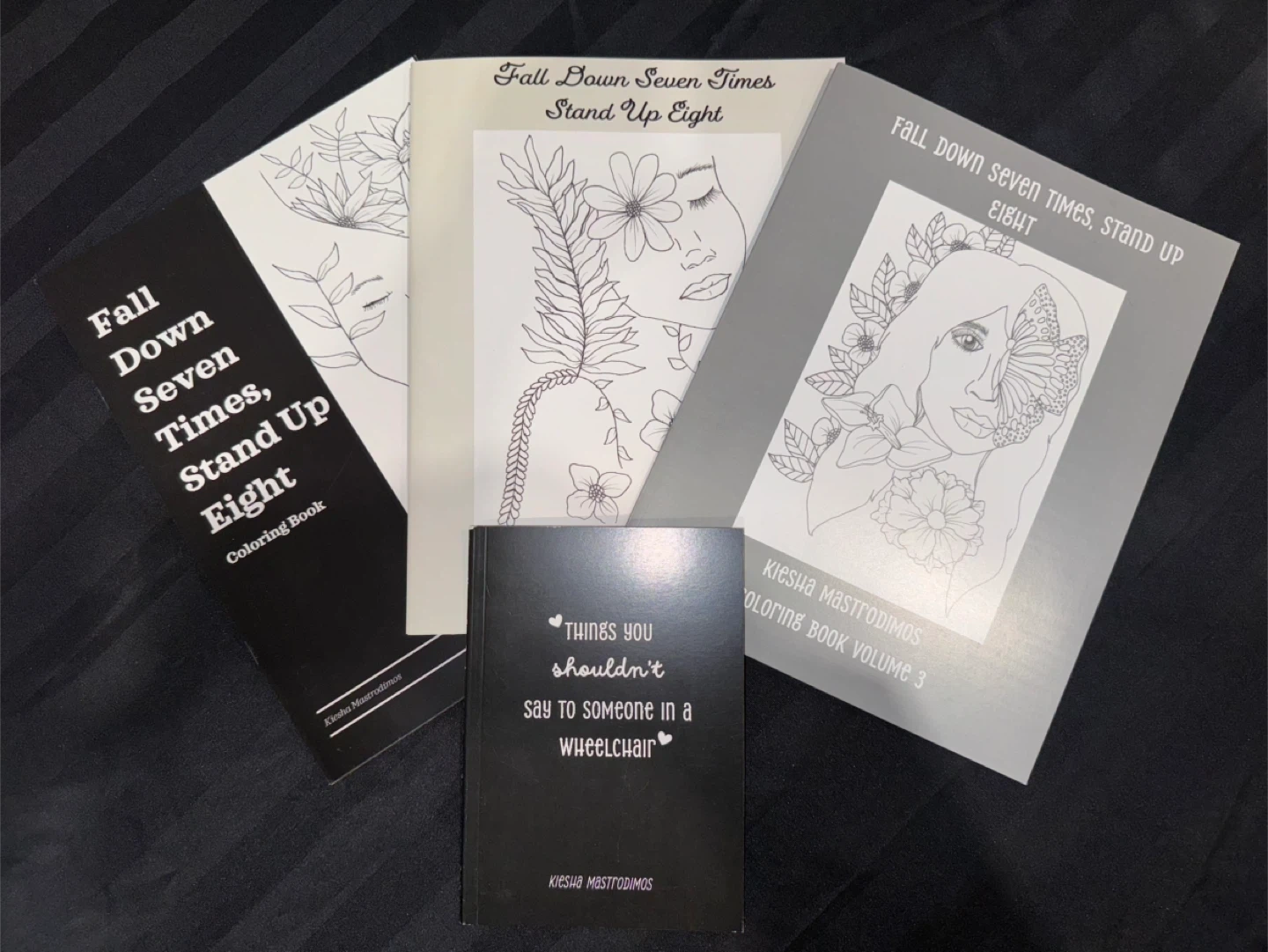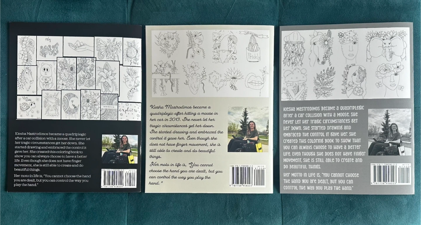 25Selling a set of coloring books titled "Fall Down Seven Times, Stand Up Eight". These books are filled with unique illustrations and inspirational messages. Perfect for anyone looking to relax and get creative! I am a quadriplegic after a car accident with a moose that broke my neck. I lost the control of my arms and fingers, but taught myself how to draw again. I created these drawings and compiled them into a colouring book that I self published! I also published a book called things you shouldn’t say to someone in a wheelchair, which is all the true first interactions I have had with people who have said the wrong thing. 😆 volume one of the colouring book is $25 as it includes 21 pages. Volume two and three of the colouring books are $15 each as they include eight colouring pages and two pages of three bookmarks that you can color, cut out and laminate. Things you shouldn’t say in a Wheelchair book is $15. If you buy any book in addition to volume one, volume one becomes $15 and you save $10.
