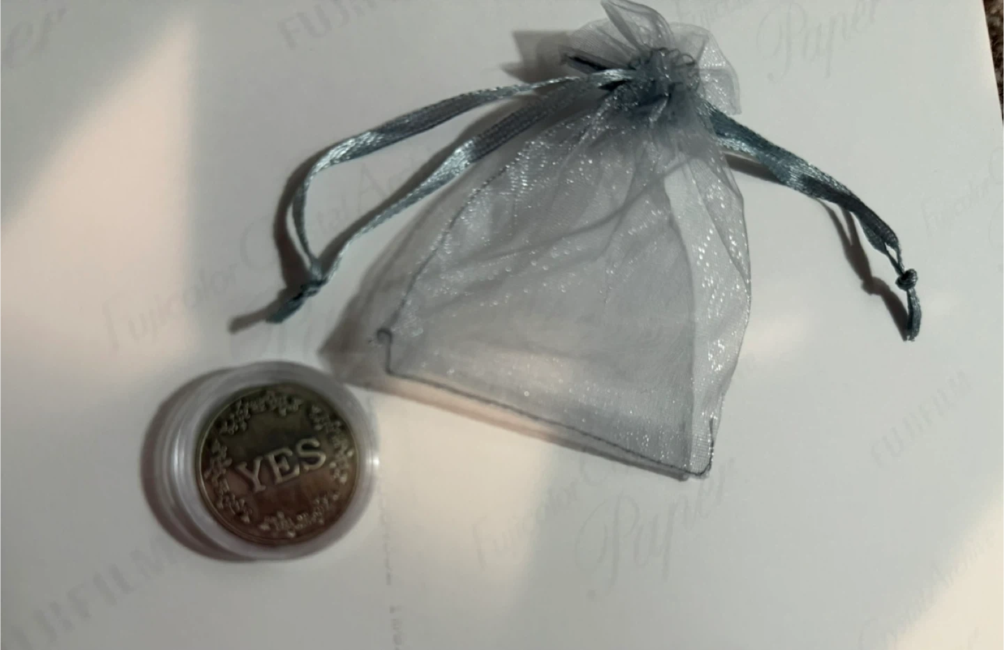 25Decision making coin to help you make the right choice! One side says yes, the other side says no. Comes with a cute little bag
