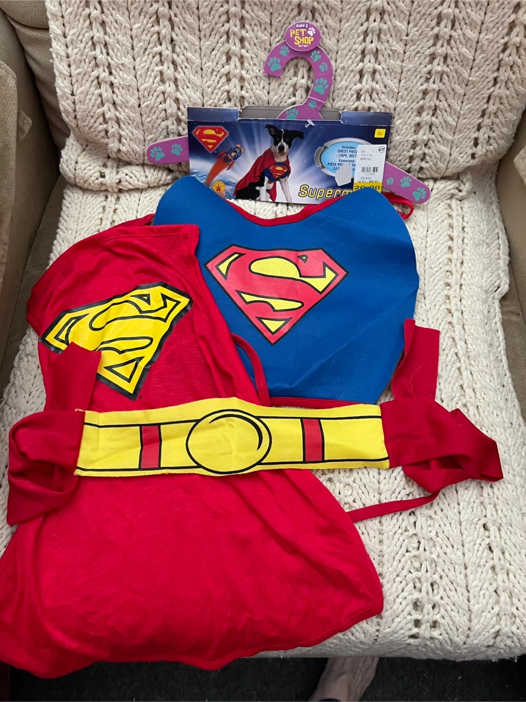 Your furry friend can become the hero of the neighbourhood with this adorable Superman costume! Includes the chest piece, cape, and belt. Size XL