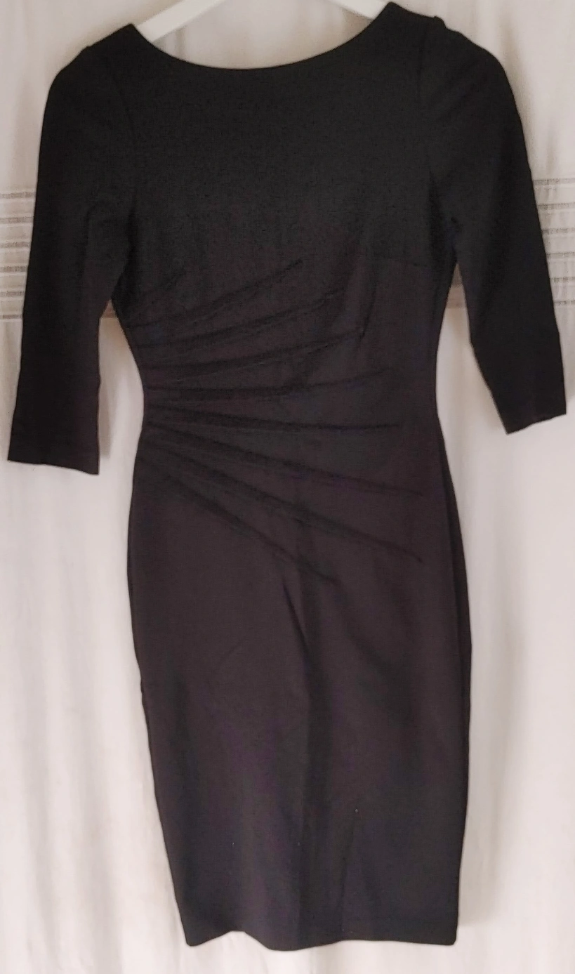 Black Le Chateau XXS cocktail dress with 3/4 sleeves. Dress is in very good condition with no stains or fraying. Made in Canada. Smoke free home pick up Mt.Brydges cash only.