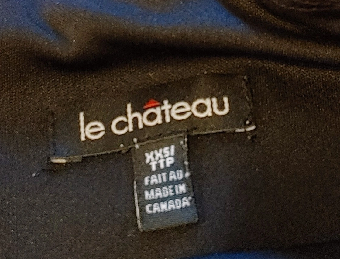 Black Le Chateau XXS cocktail dress with 3/4 sleeves. Dress is in very good condition with no stains or fraying. Made in Canada. Smoke free home pick up Mt.Brydges cash only.