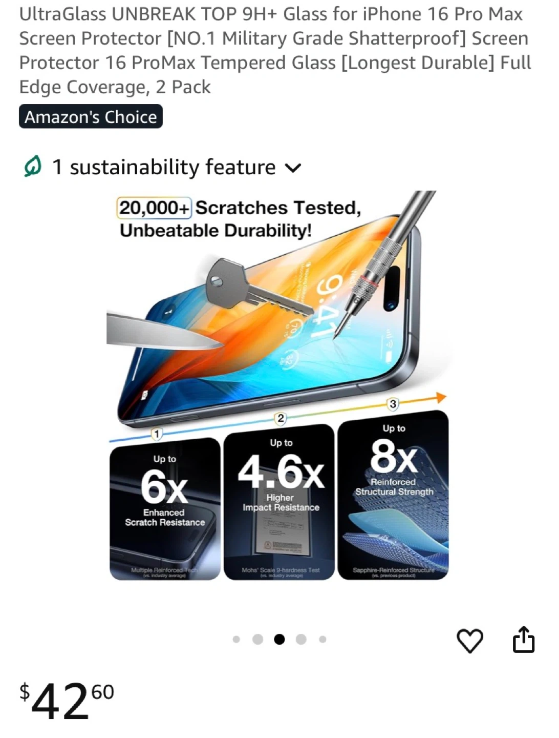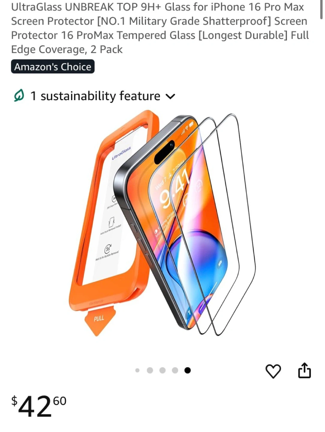 Show allUltraGlass iPhone 16 Pro Max Screen Protector (2 Pack)