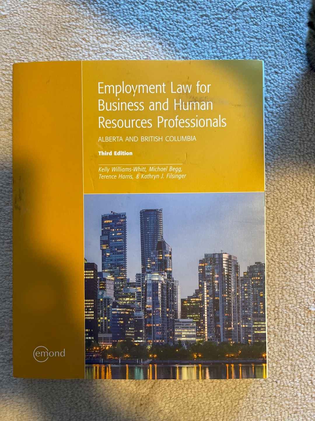 Selling the textbook 'Employment Law for Business and Human Resources Professionals: Alberta and British Columbia, Third Edition' by Kelly Williams-Whitt, Michael Begg, Terence Harris, and Kathryn J. Filsinger