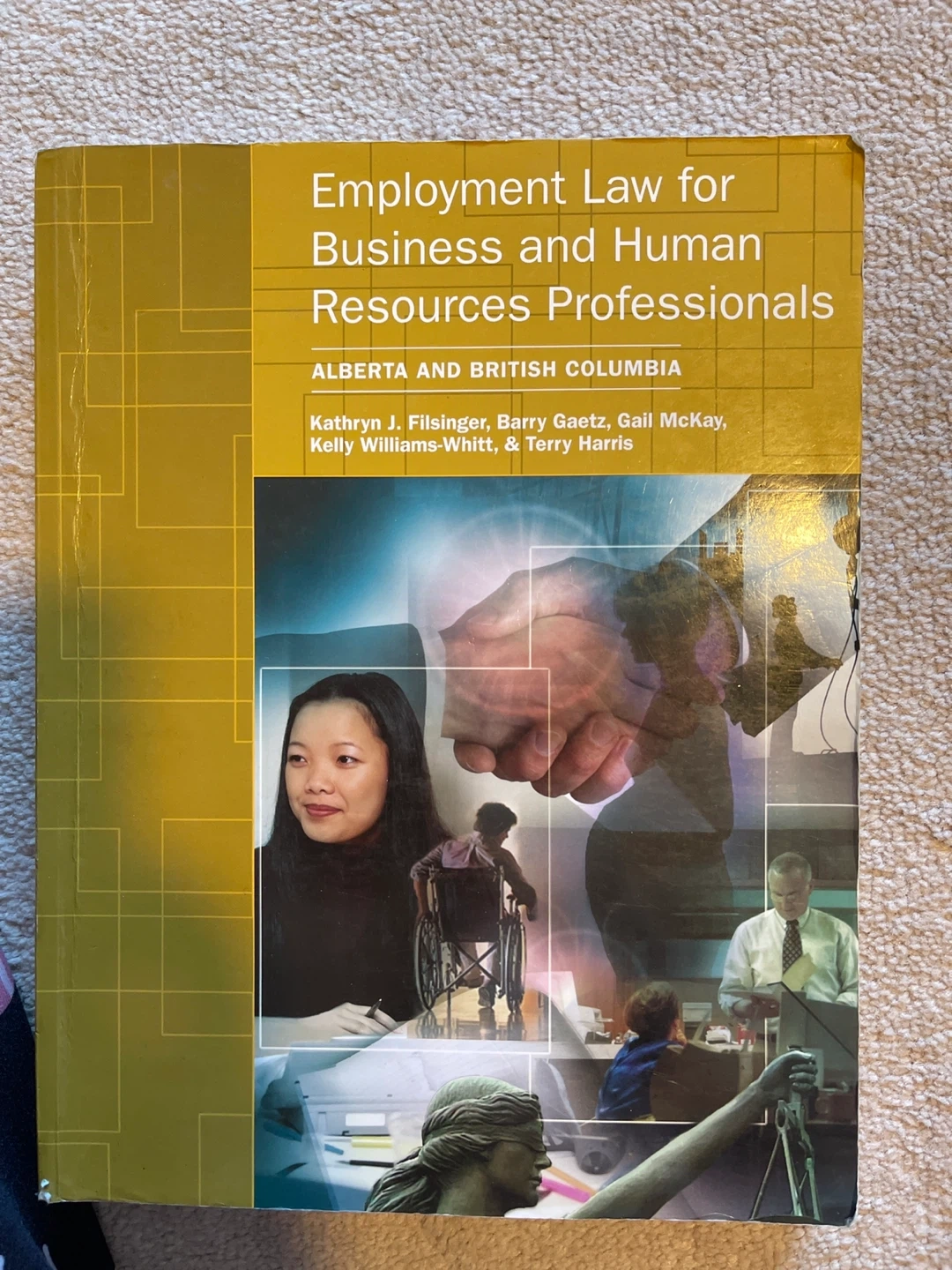 Selling a textbook titled Employment Law for Business and Human Resources Professionals for Alberta and British Columbia. It's written by Kathryn J. Filsinger, Barry Gaetz, Gail McKay, Kelly Williams-Whitt, and Terry Harris