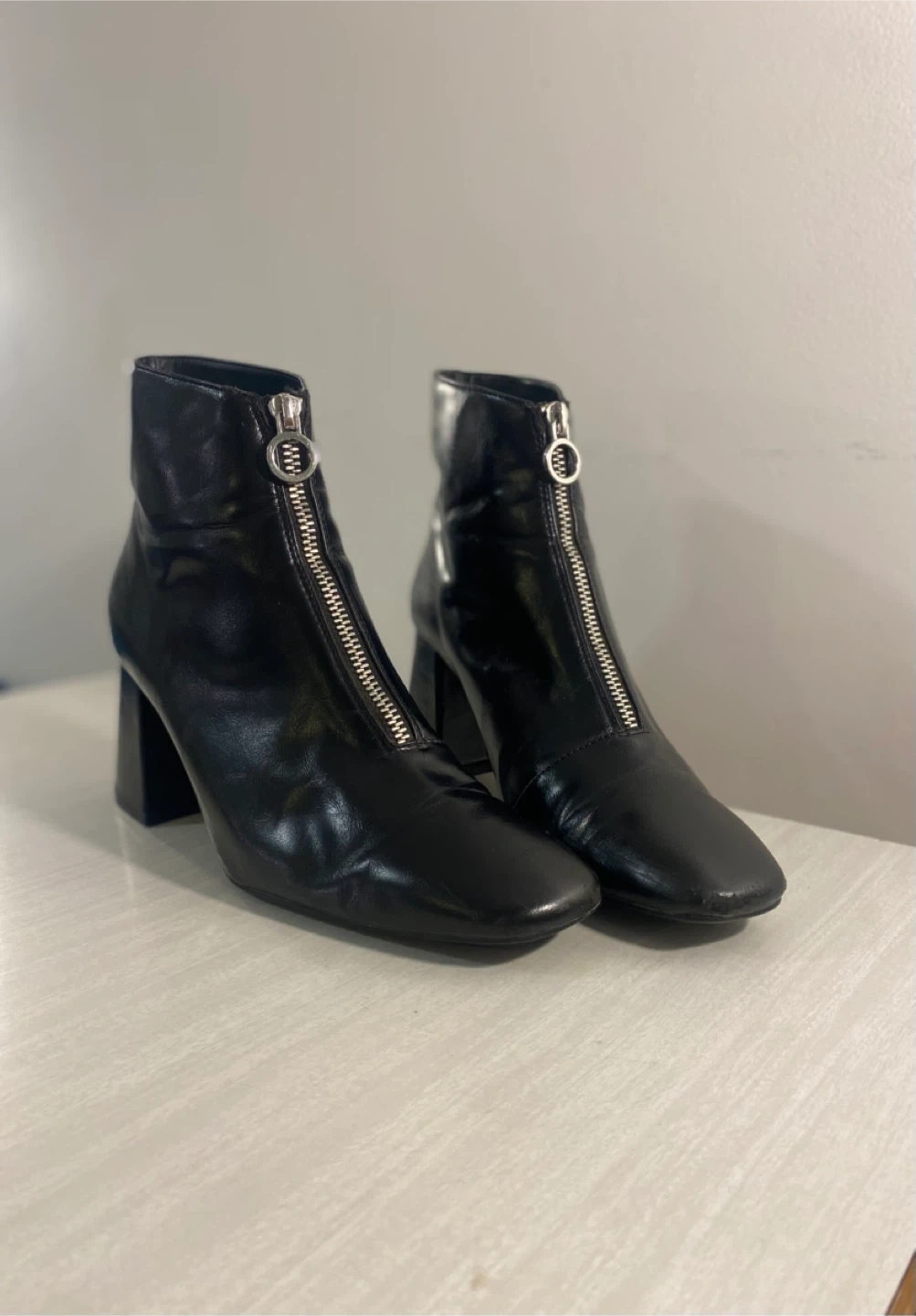 Selling a pair of incredibly stylish Zara Trafaluc, black ankle boots in a size 8.5 EU 39. These are almost impossible to find anymore.