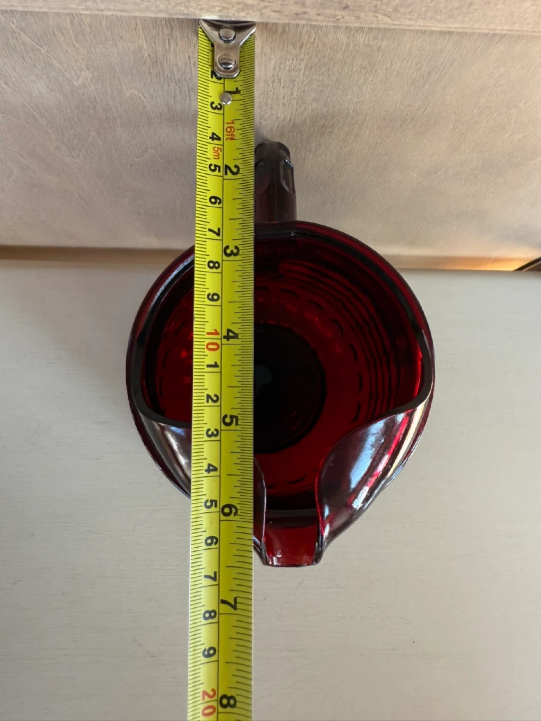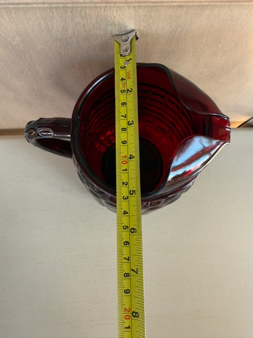75Selling this lovely AH red glass pitcher with ice lip. Excellent condition with no damage noted. Please see photos for size & condition. Cash and pick up only in W. Hillhurst NW. Thanks for looking!