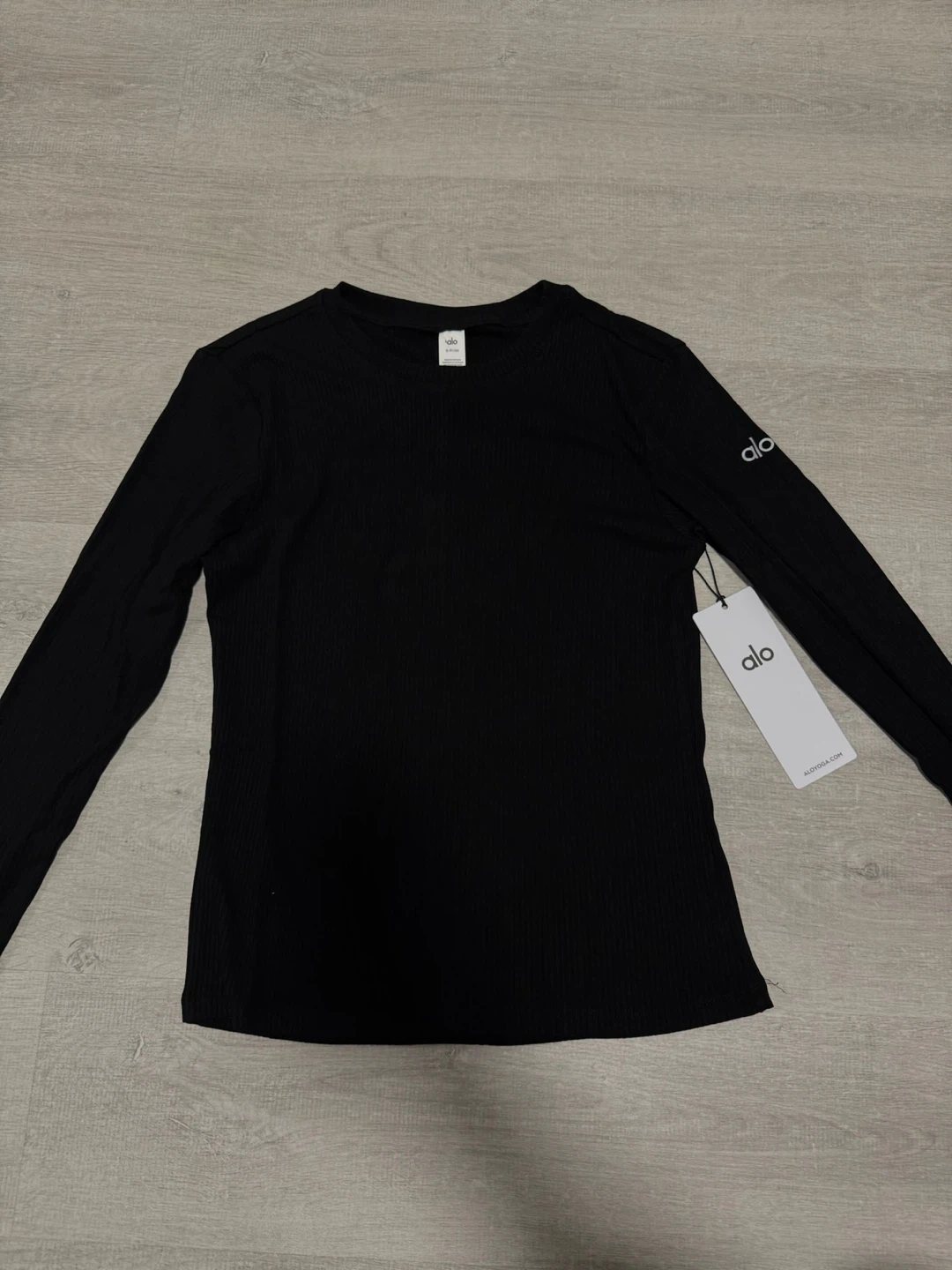 Selling a brand new ALO Yoga Ribbed Sea Coast Long Sleeve in black and white. Available from Small-Large. This long sleeve is super comfortable and stylish, perfect for workouts or just lounging around. Retails for $88! ๐Ÿ“Ž Message me for pick-up address and shipping options. โš ๏ธ Prices are firm and in cash, all in final sale.