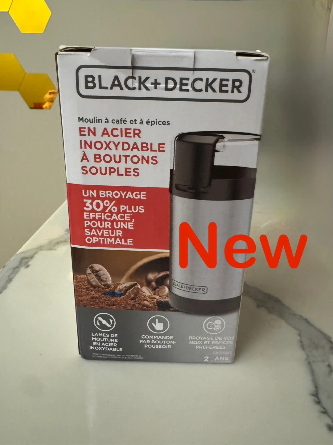 Selling a brand new BLACK+DECKER Easy-Touch Stainless Steel Coffee & Spice Grinder! It features stainless-steel grinding blades, a stainless-steel bowl, a one-touch push-button, pulse control, and cord storage. Box included