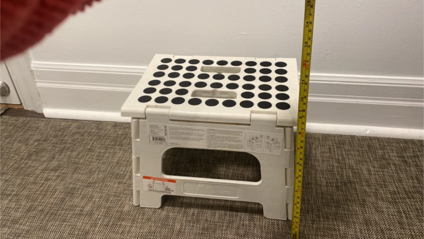 Looking to make those hard-to-reach places a little easier to get to? Check out this folding step stool! It's super lightweight and easy to carry around the house. When you're done, it folds up for easy storage. Perfect for the kitchen, bathroom, or garage!
