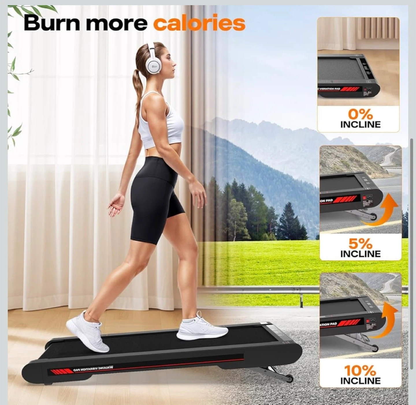 Get your steps in with this walking vibration pad treadmill! It features light and strong vibration modes, as well as light and strong superposition modes. The 5-layer shock-absorbing running belt provides a comfortable workout experience. It also has incline options.