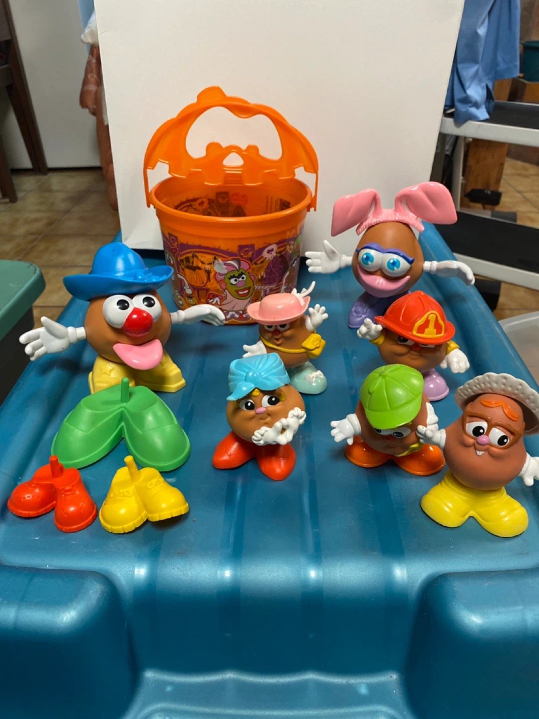 Selling a Potato Head Toy Set with 7 figures and extra parts included. Plus a Halloween Potato Head trick-or-treat Bucket! Great used condition.