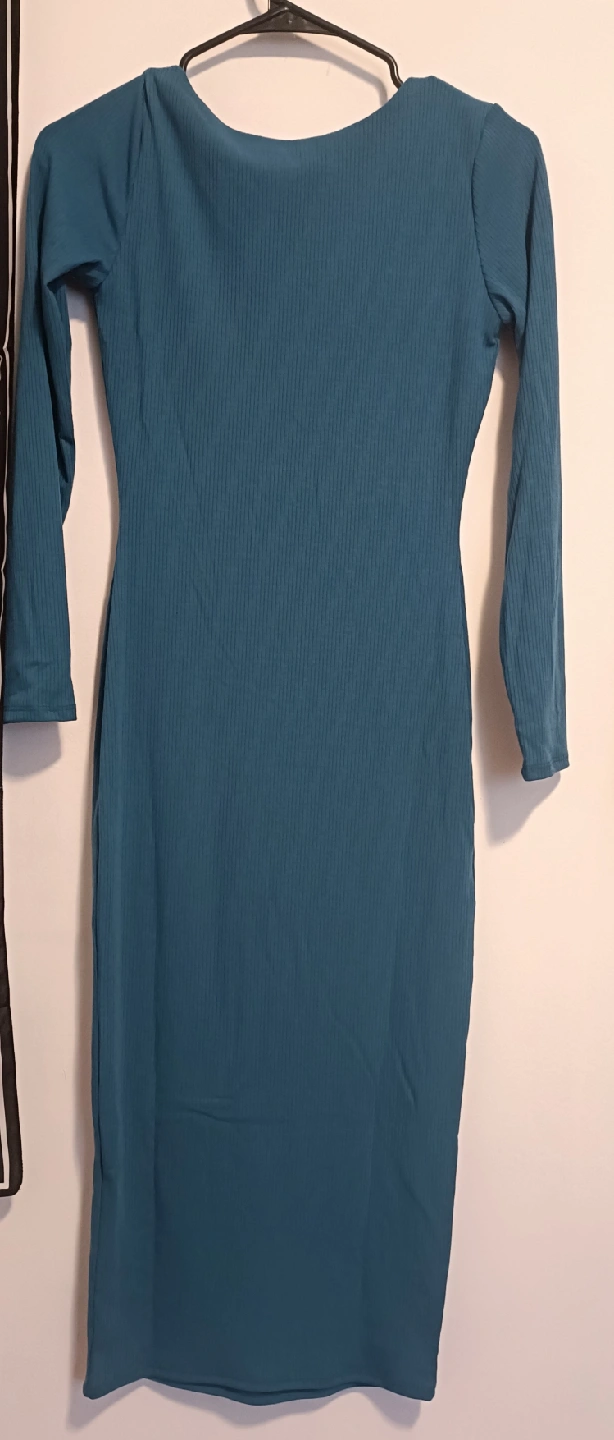 A beautiful bodycon midi length dress in the shade of a beautiful peacock/teal. Perfect for a casual wear. Can also be fused with the right accessories to elevate the look!