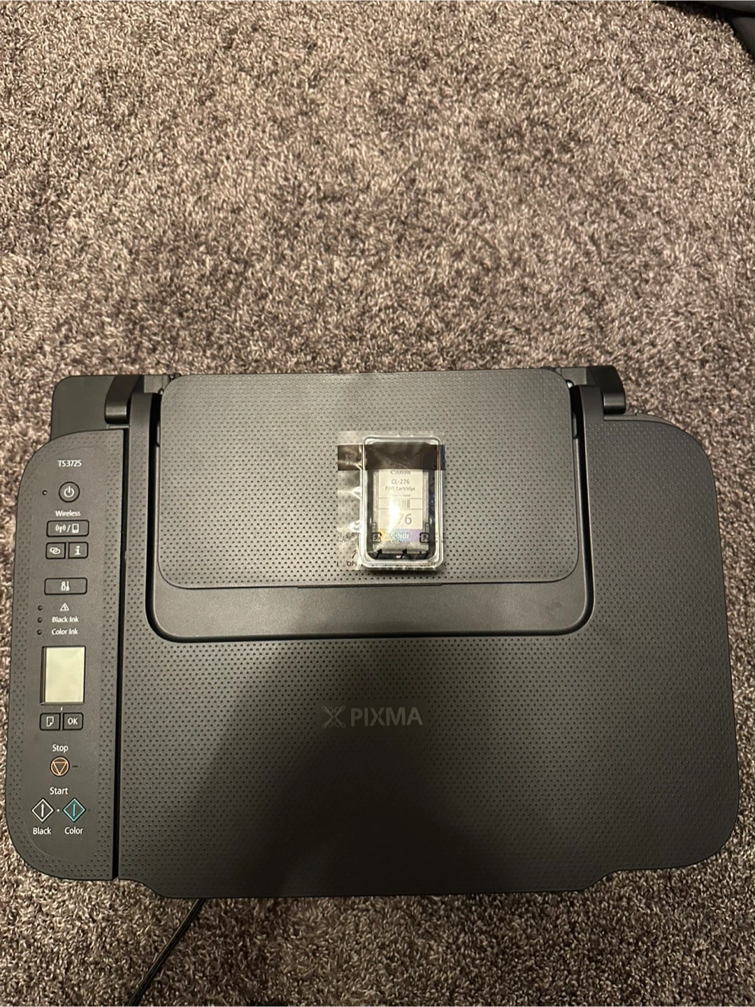 Selling a Canon PIXMA TS3725 printer. It uses CL-276 ink cartridges and has both black and colour printing options. It also has wireless connectivity. Comes with new colour cartridge.