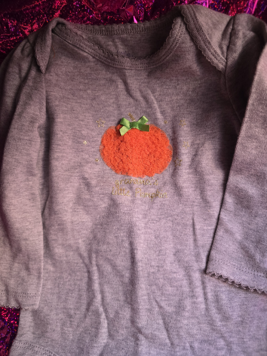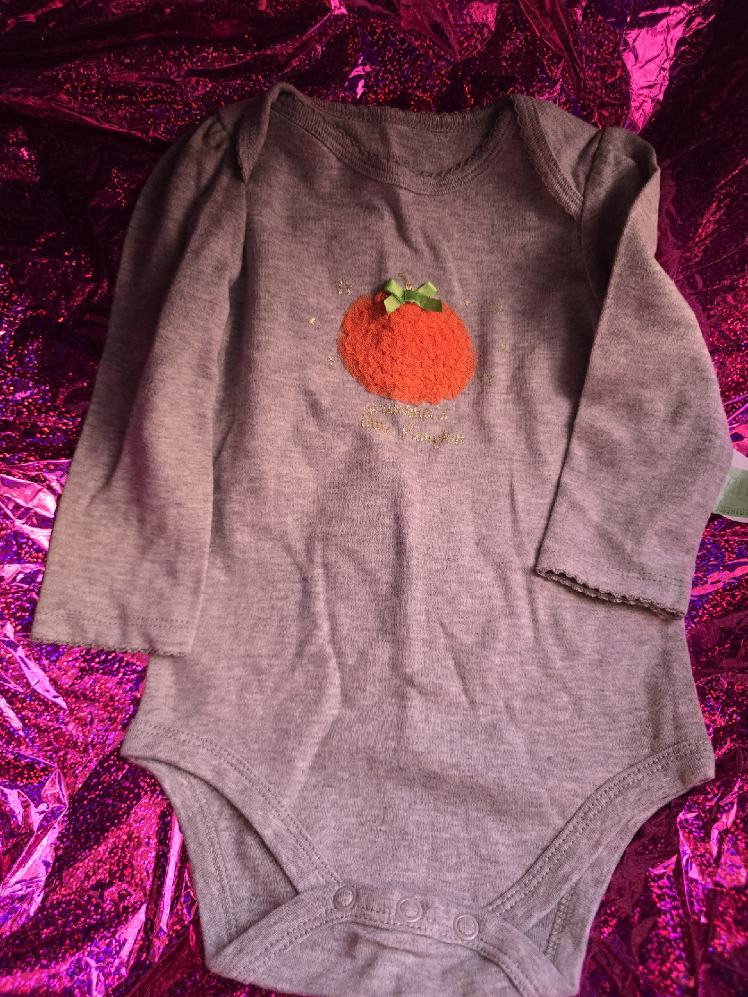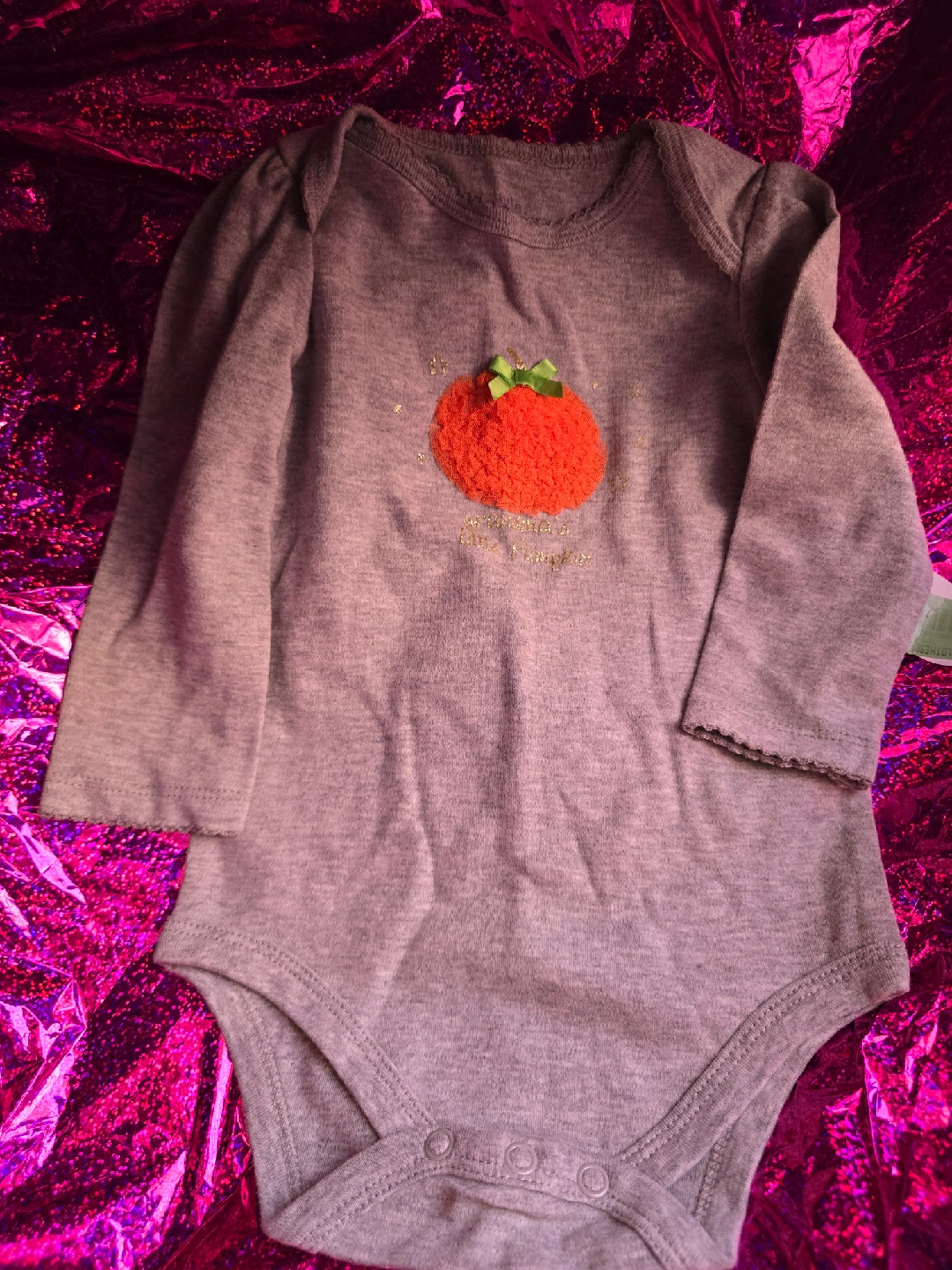 Cute Little Wonders onesie in size 6-9 months! It features a sweet pumpkin design. Perfect for your little one!