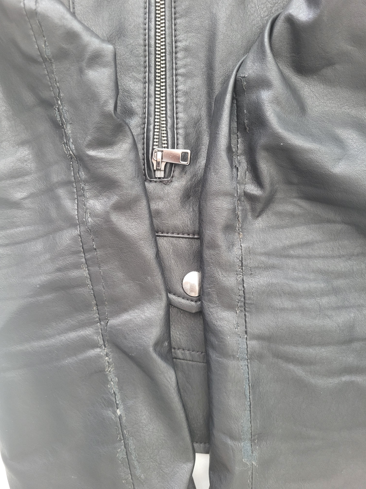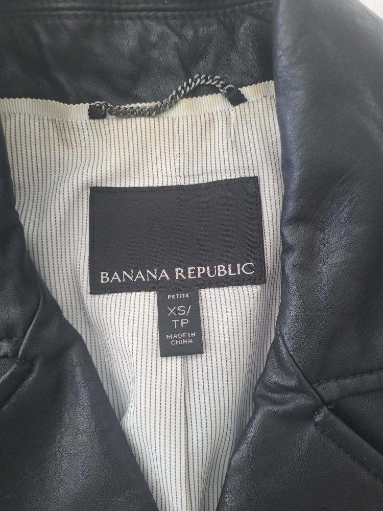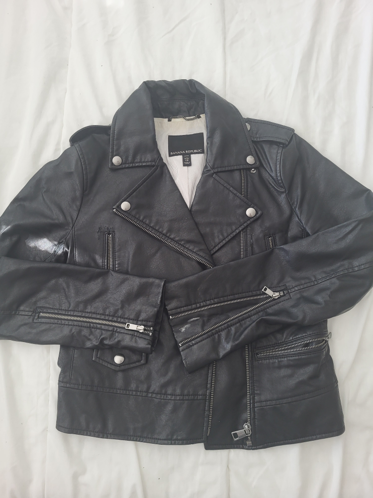 Selling a Banana Republic black vegan leather jacket in size XS. It's a petite size. Great for adding a bit of edge to any outfit! Some peeling on the seems under armor shown on last photo, but nice addition to your fall wardrobe. Purchased priced was 200cad.