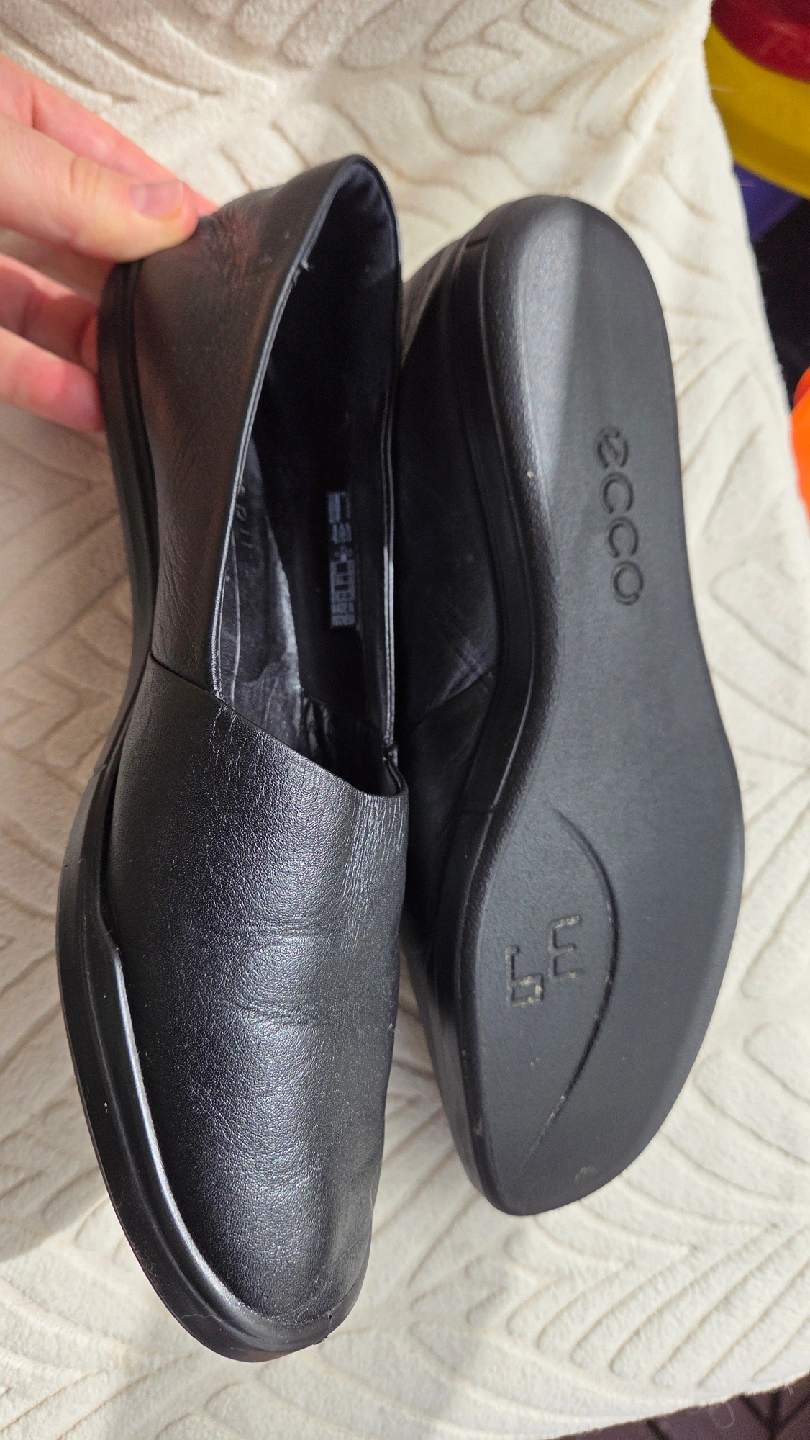 Selling a pair of Ecco women's flats in black leather. The size is 8-8.5 US or 39 EU. Worn only in interior space. They are in excellent condition.