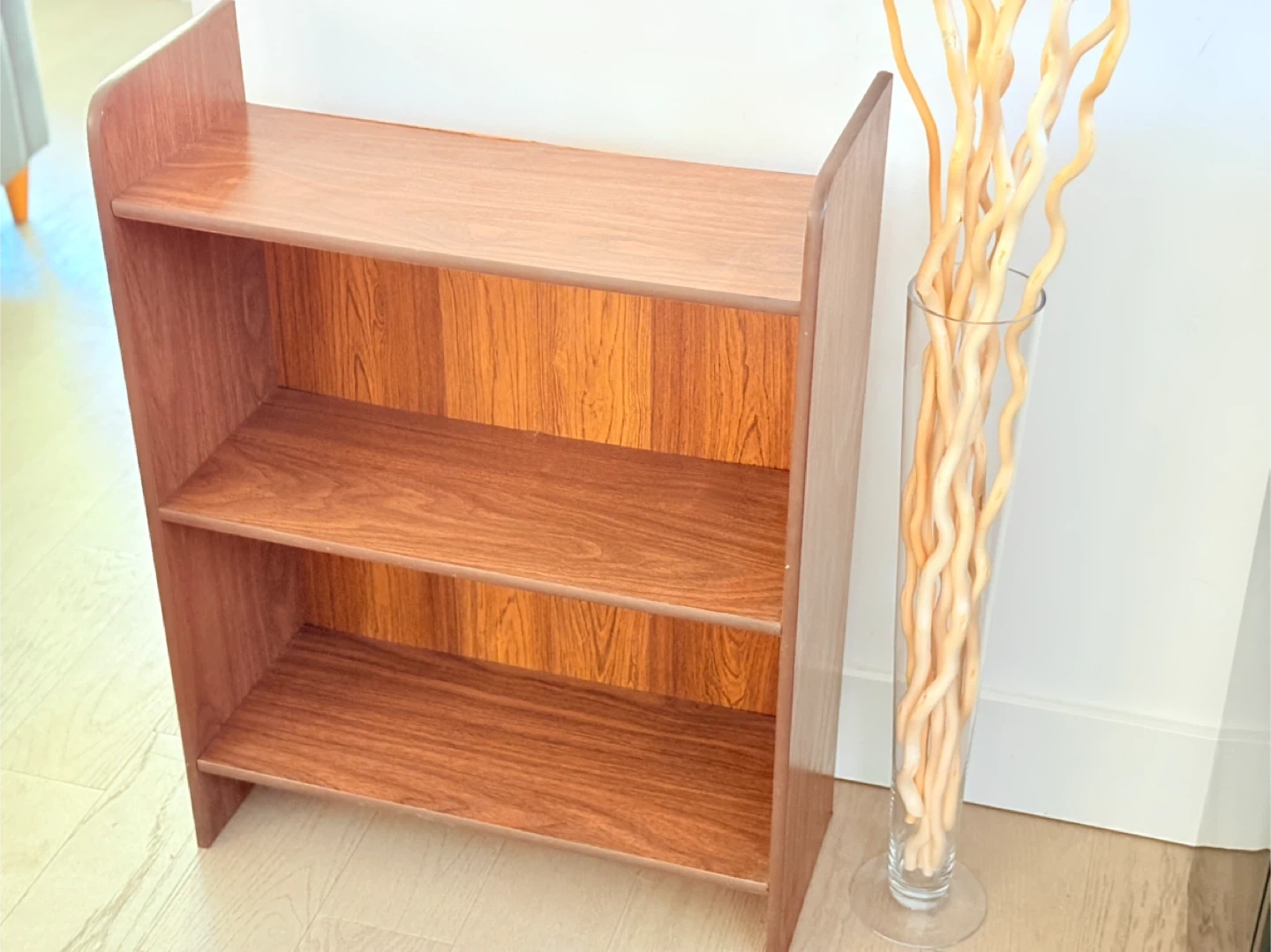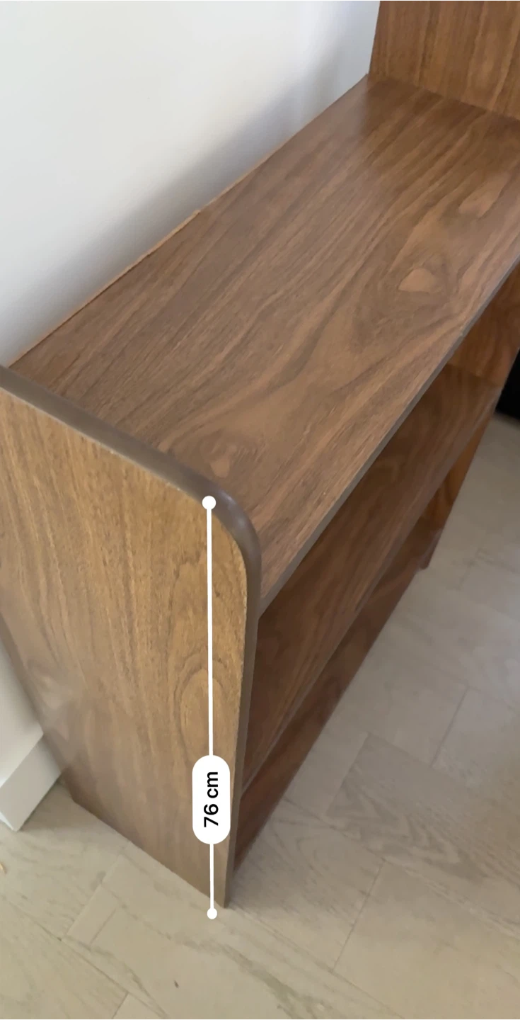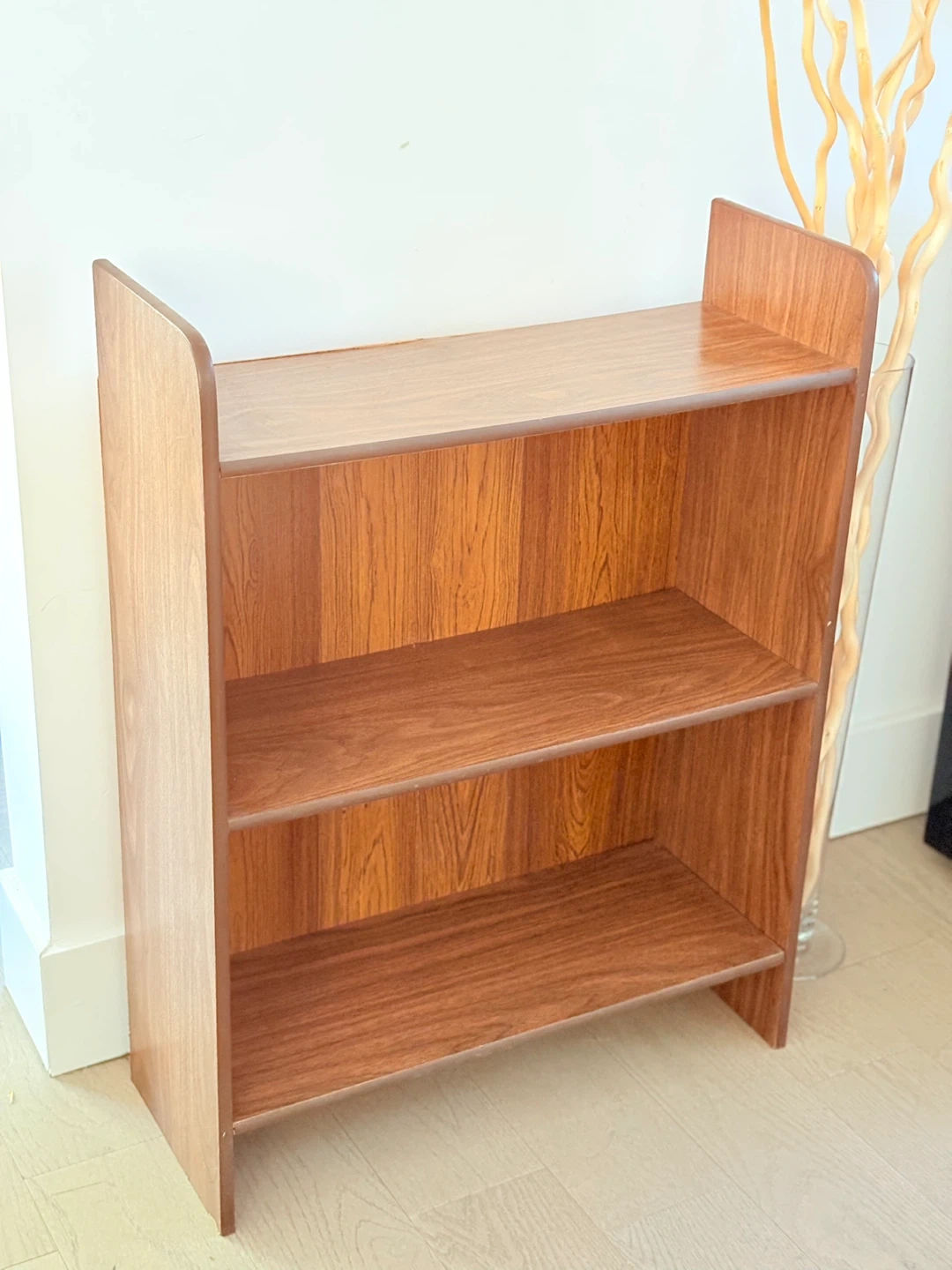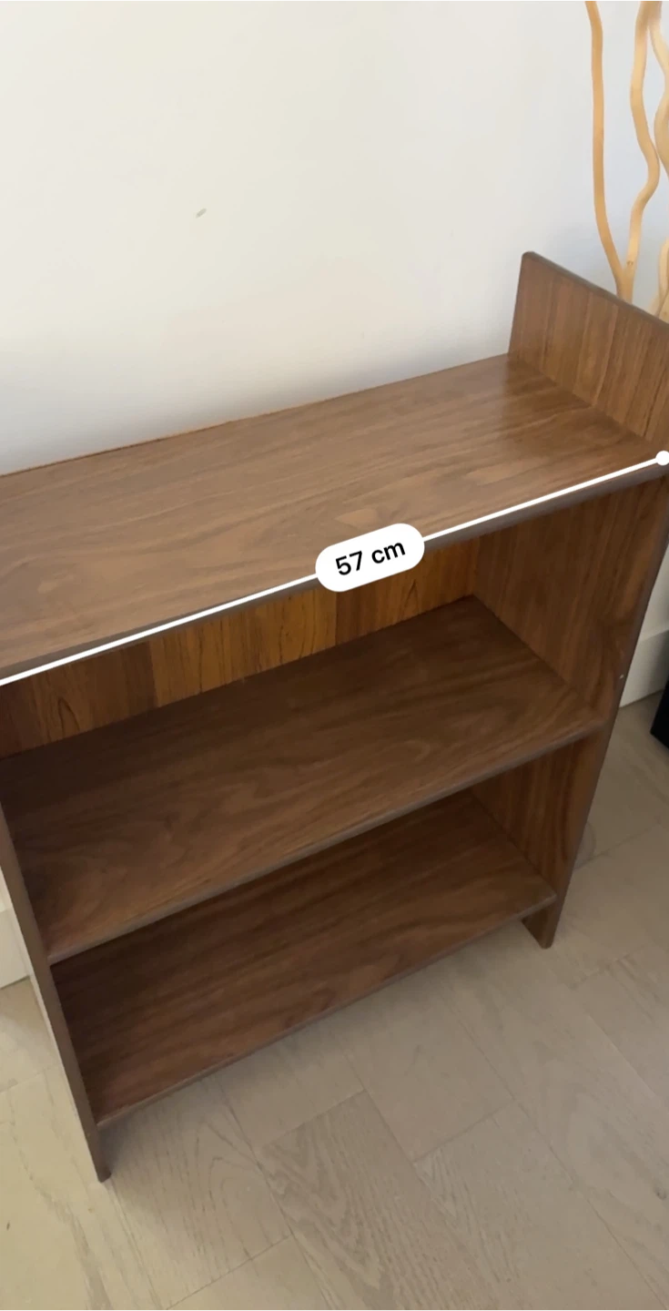 Selling a wooden bookcase with three shelves. It's in great shape and measures 76cm in height and 57cm in width. Perfect for books or displaying items!