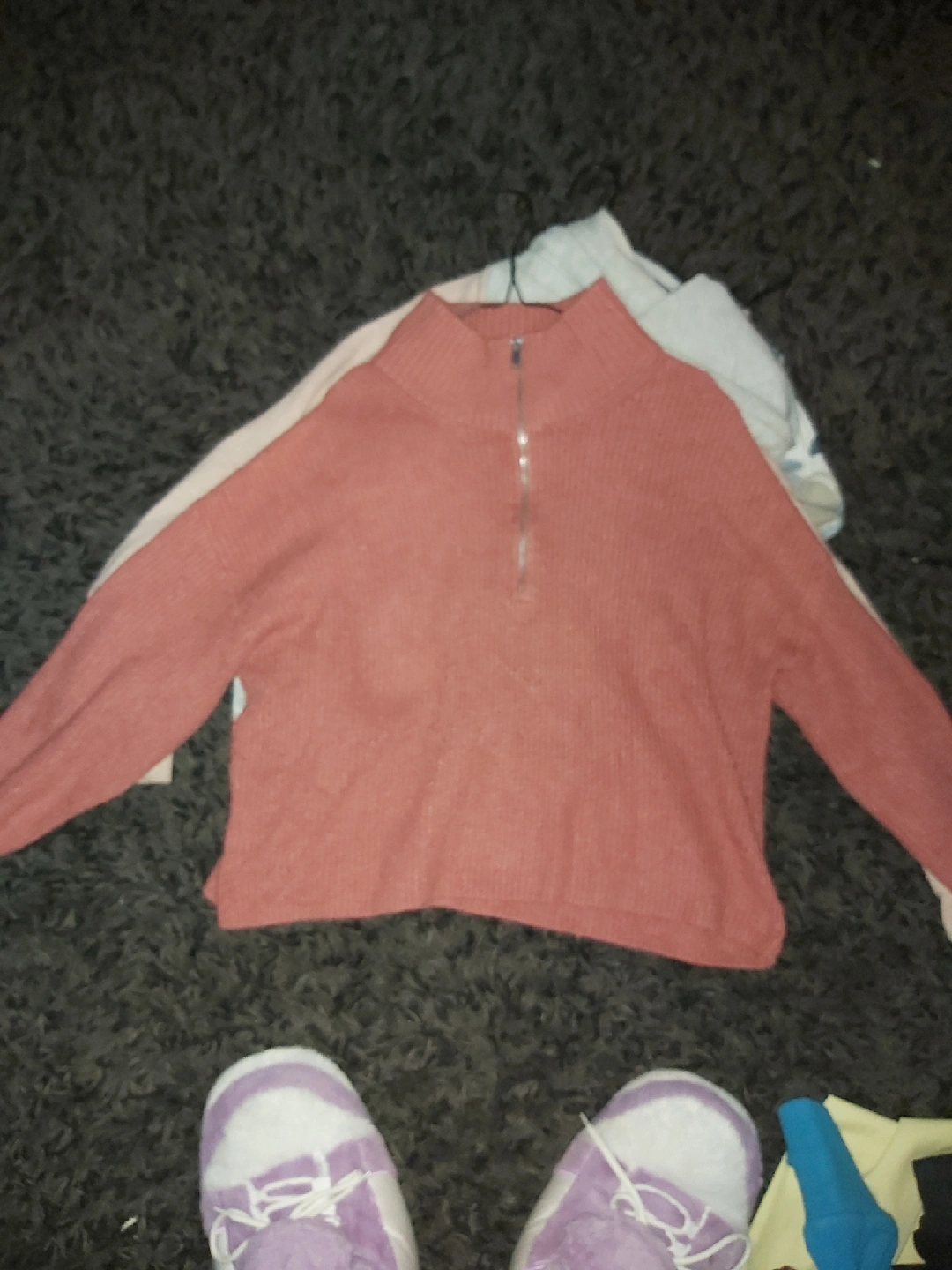 Cozy coral-coloured quarter zip pullover! It's in great condition and ready for a new home. Perfect for layering or wearing on its own on those cooler days!