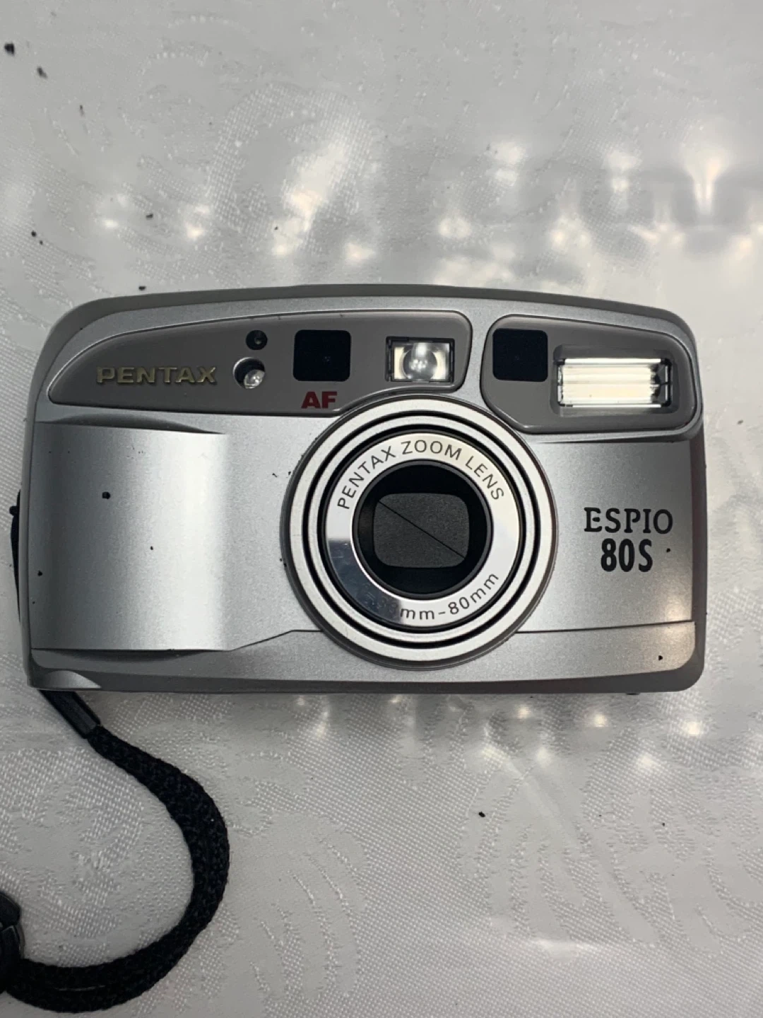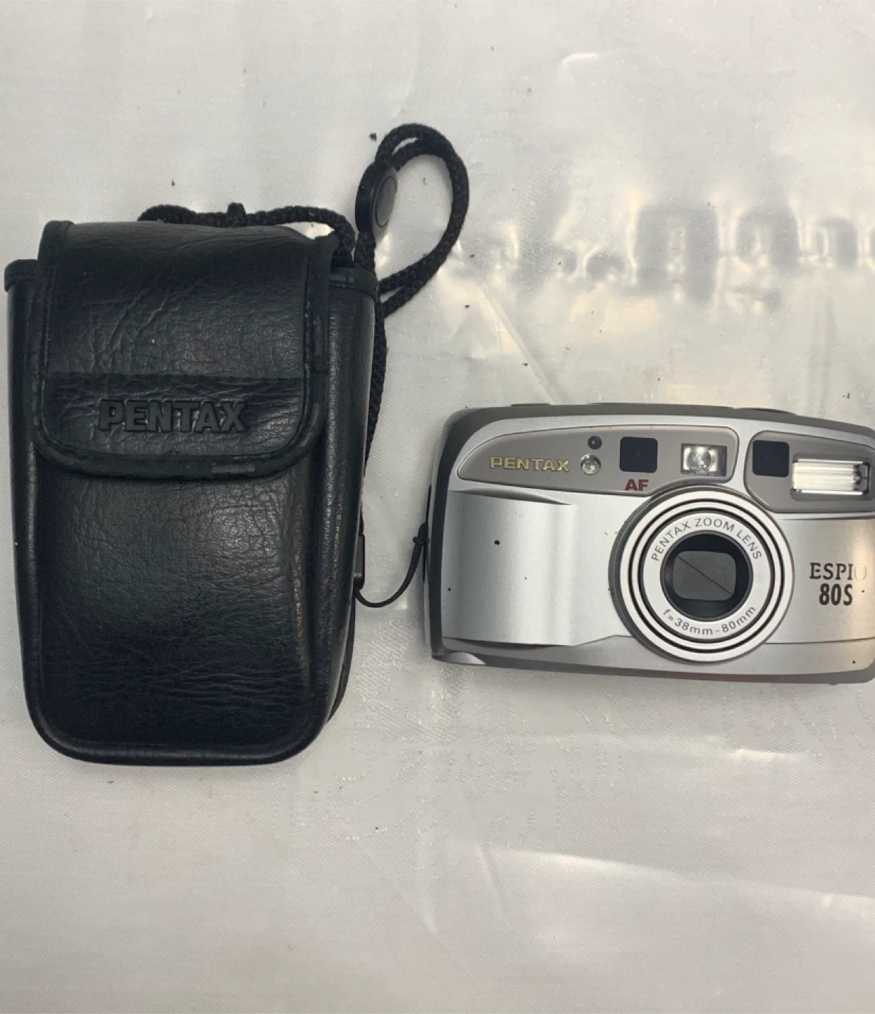 Selling a Pentax Espio 80S film camera. It comes with a case and wrist strap. The lens is a Pentax zoom lens, 38mm-80mm. Great for capturing those special moments! Takes real film. Great camera and just sitting in a trunk.