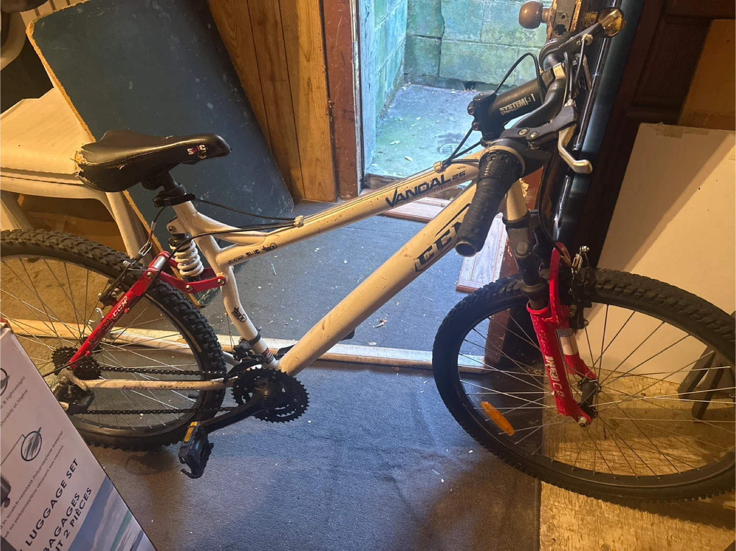 Selling a CCM Vandal 26 mountain bike. It's white with red accents. Great for trails or getting around town!