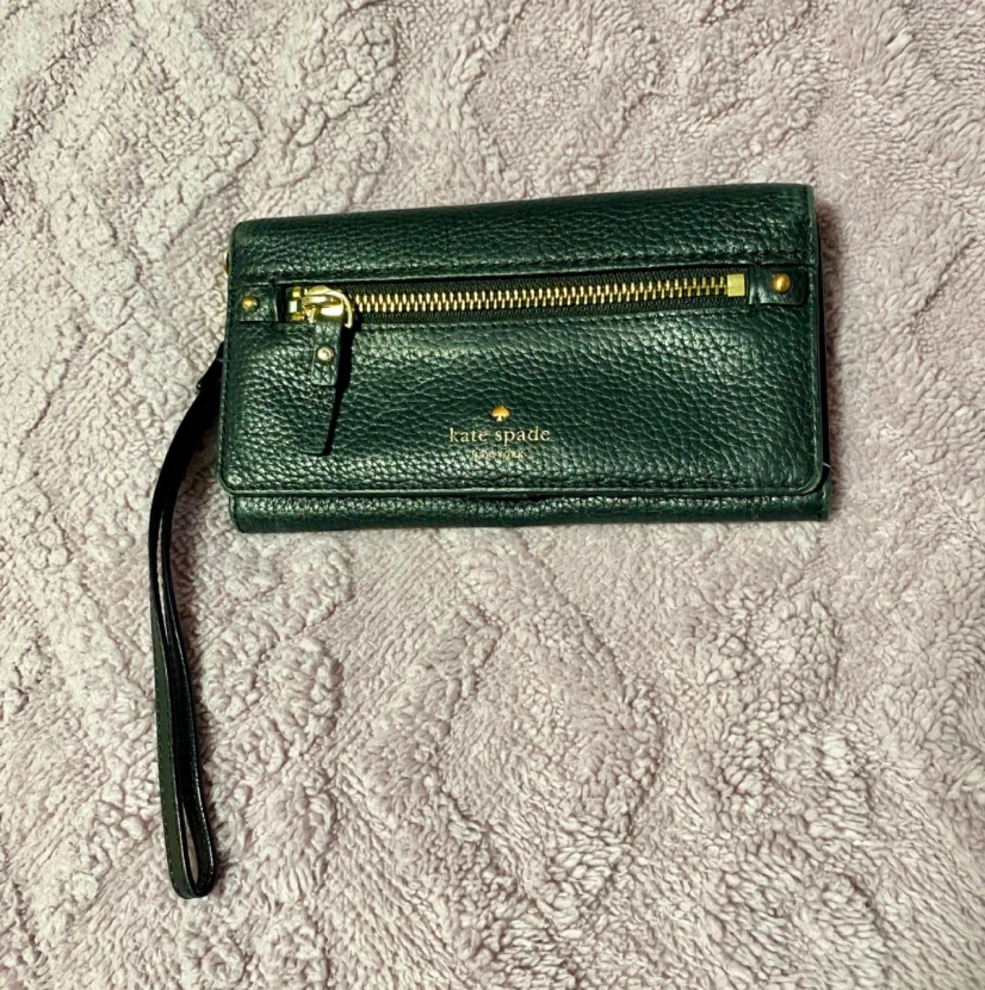 Selling a Kate Spade black leather wristlet wallet in great condition. There’s some wear/ darkened to the gold hardware. Zipper is great. See pics.
