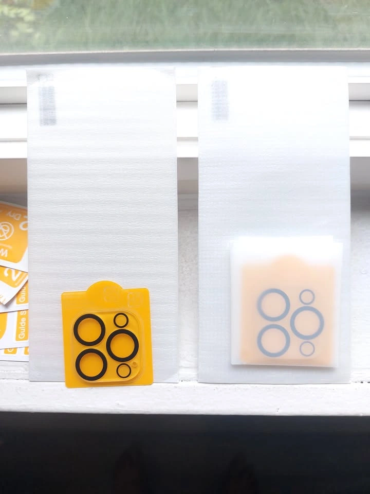 The package came with 3 sets, and I only used one. Remaining are 2 complete sets of glass screen protector, and camera lens protector.