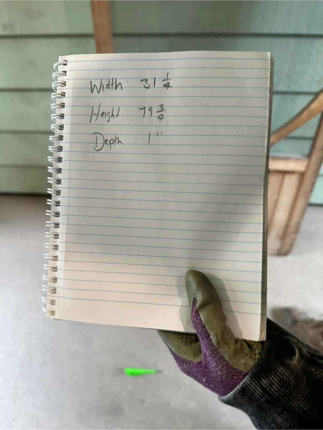 A vintage wooden screen door. It's a unique piece with a charming, rustic look. The dimensions are approximately 31 3/4 inches wide, 79 3/4 inches high, and 1 inch deep. Perfect for adding character to your home!